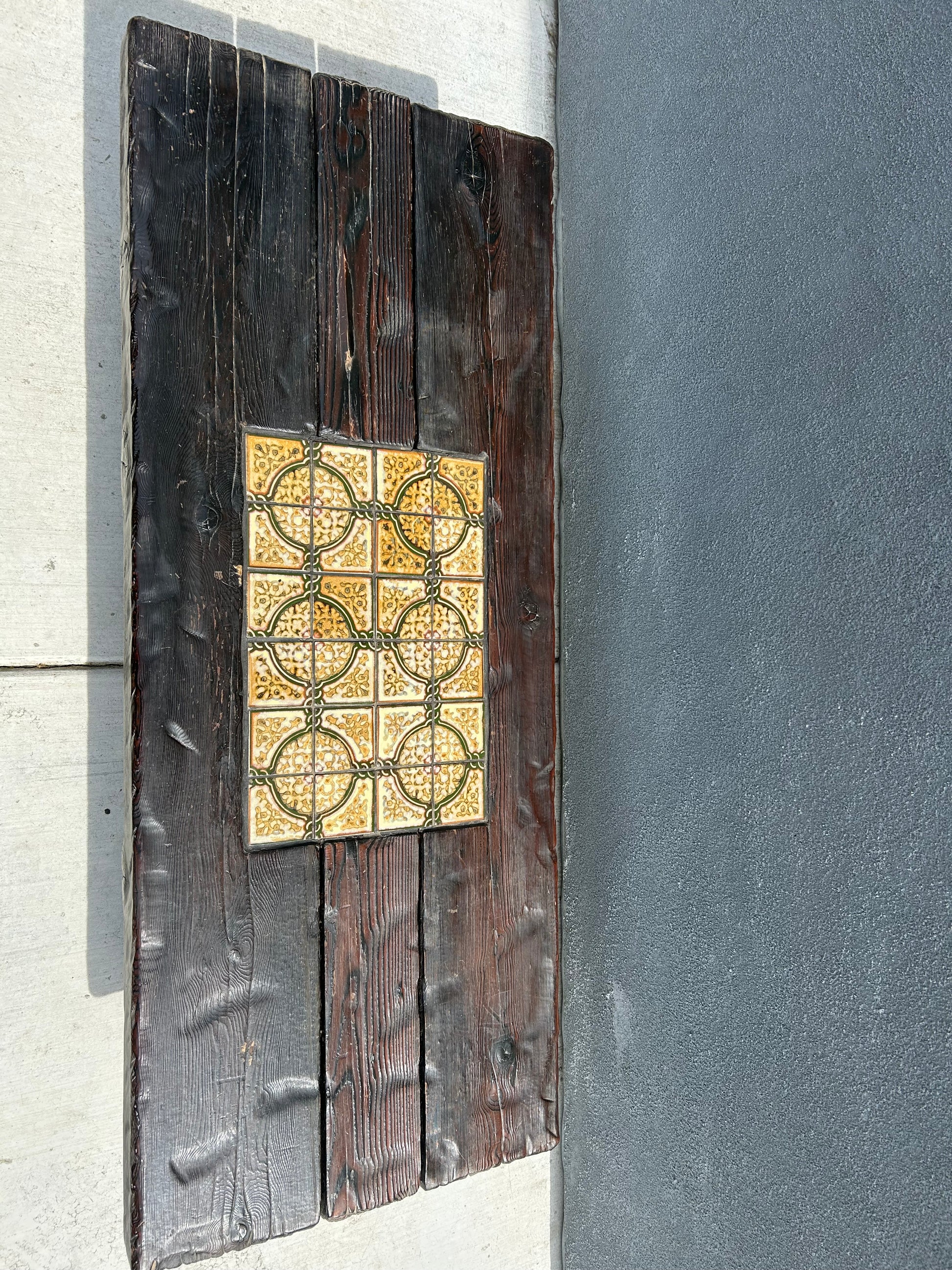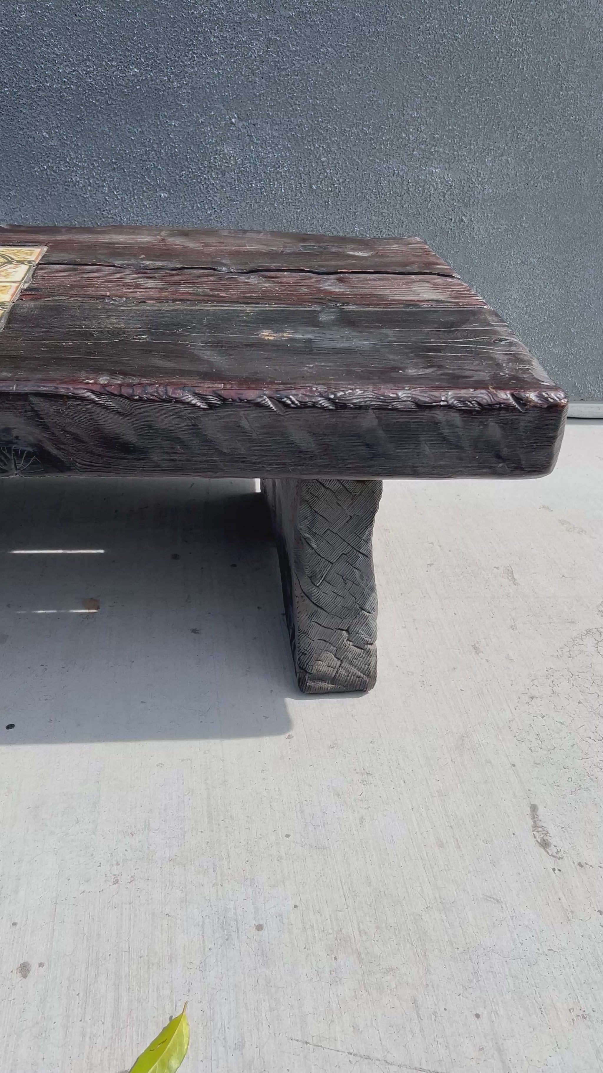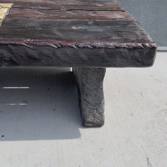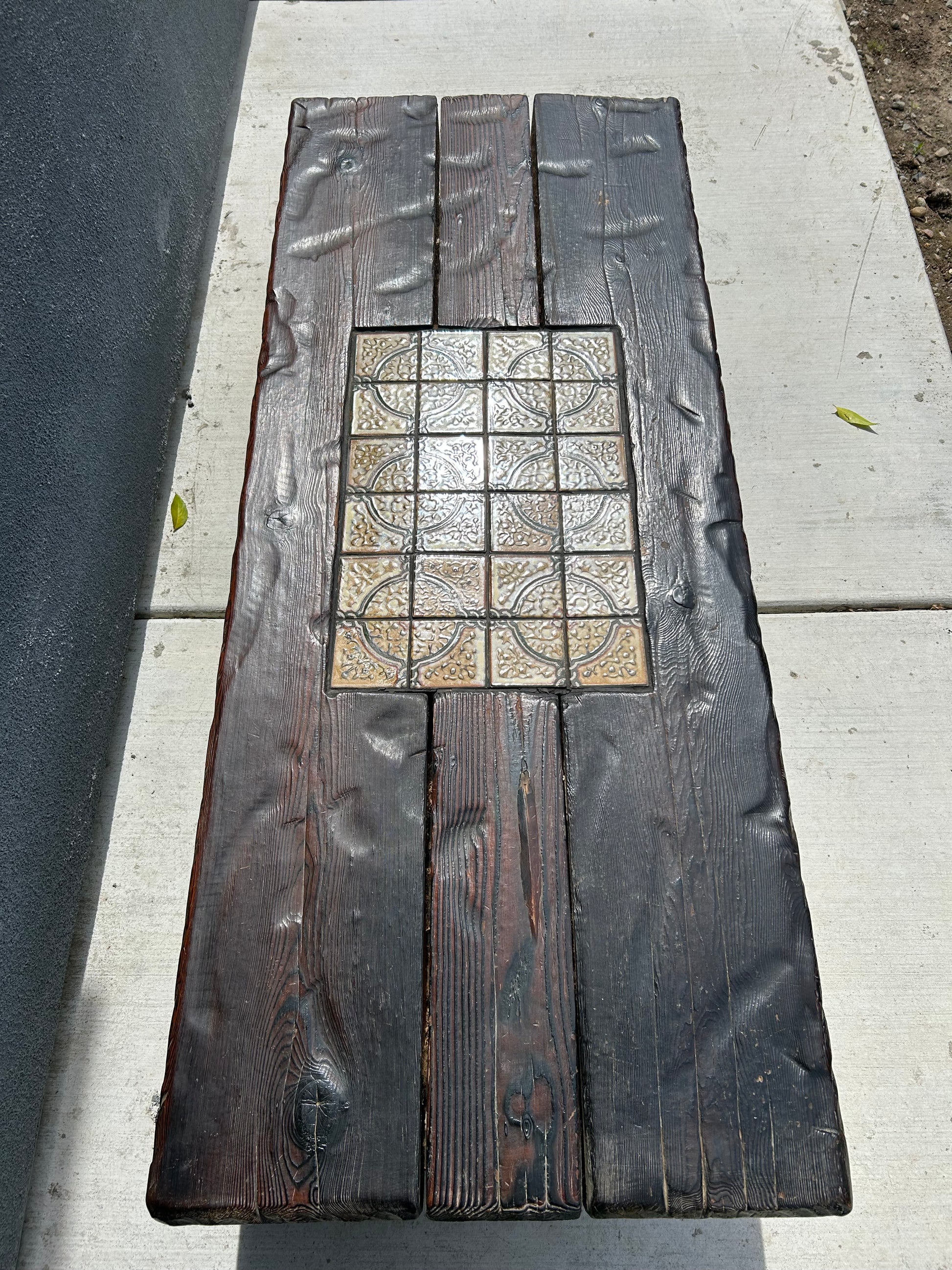 Mid-Century Brutalist Tiled and Solid Wood Coffee Table/Bench, Circa 1970s