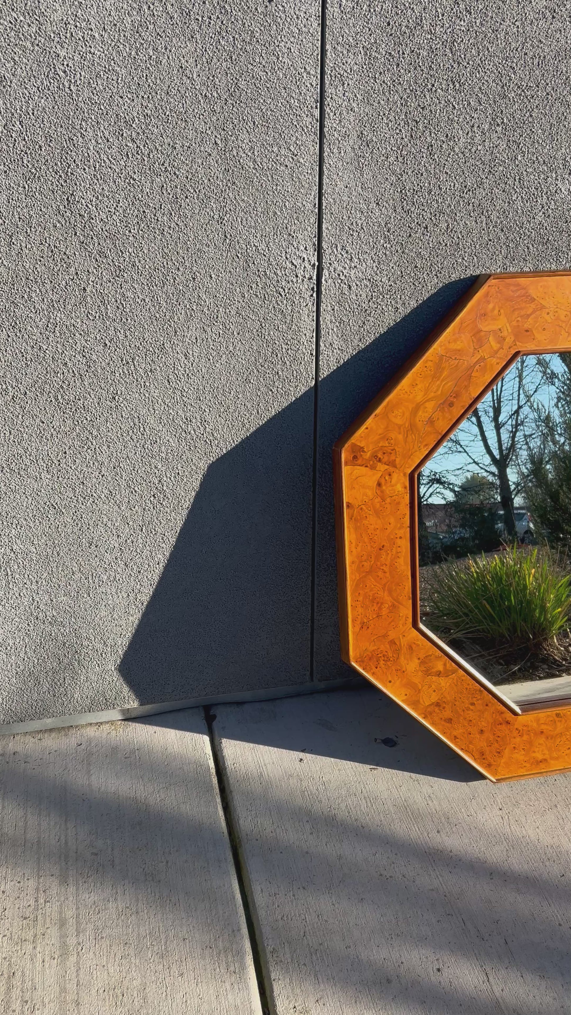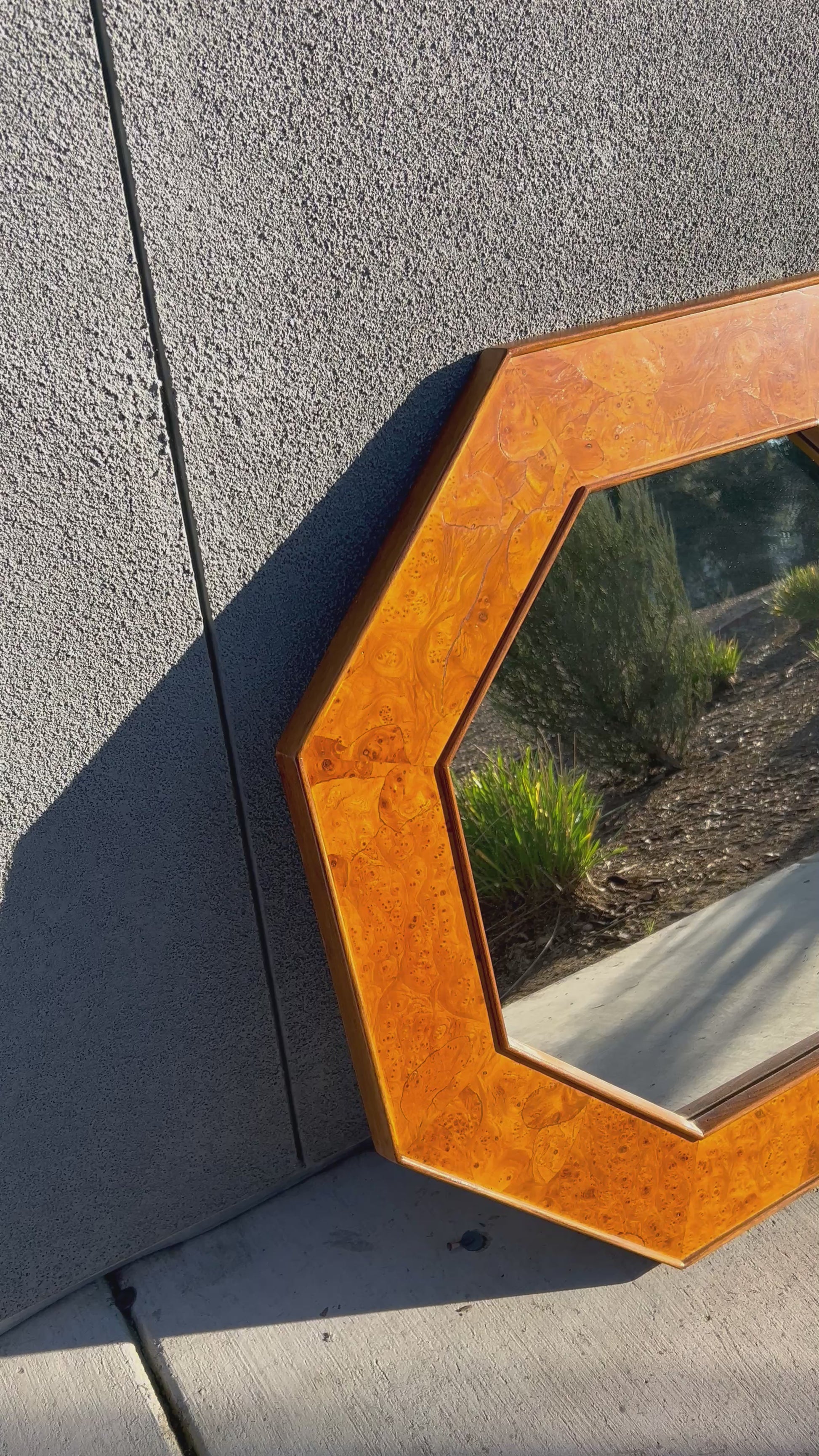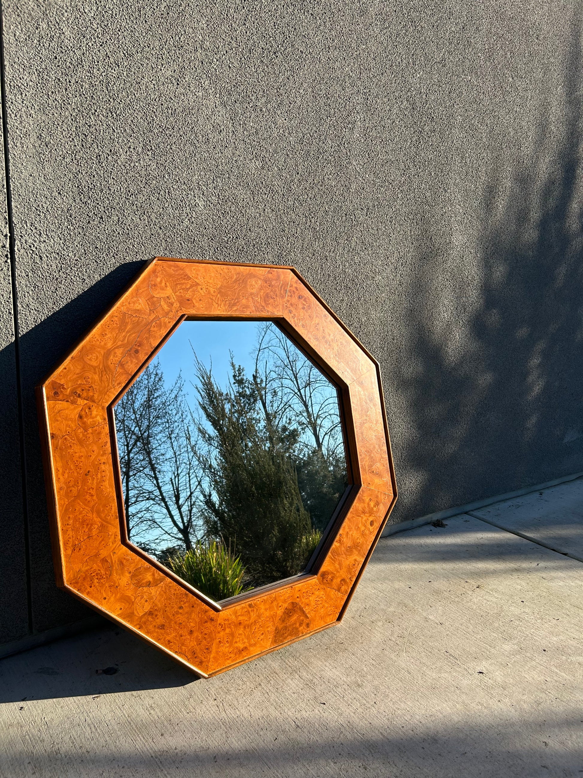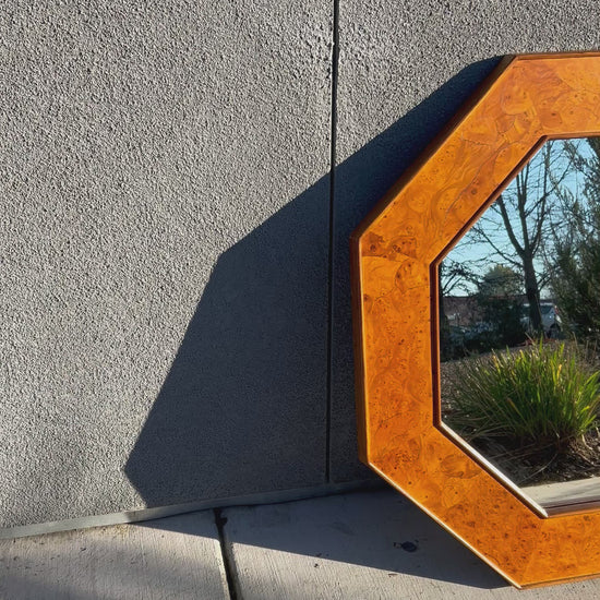 Burl Wood Octagonal Accent Wall Mirror, Circa 1970s
