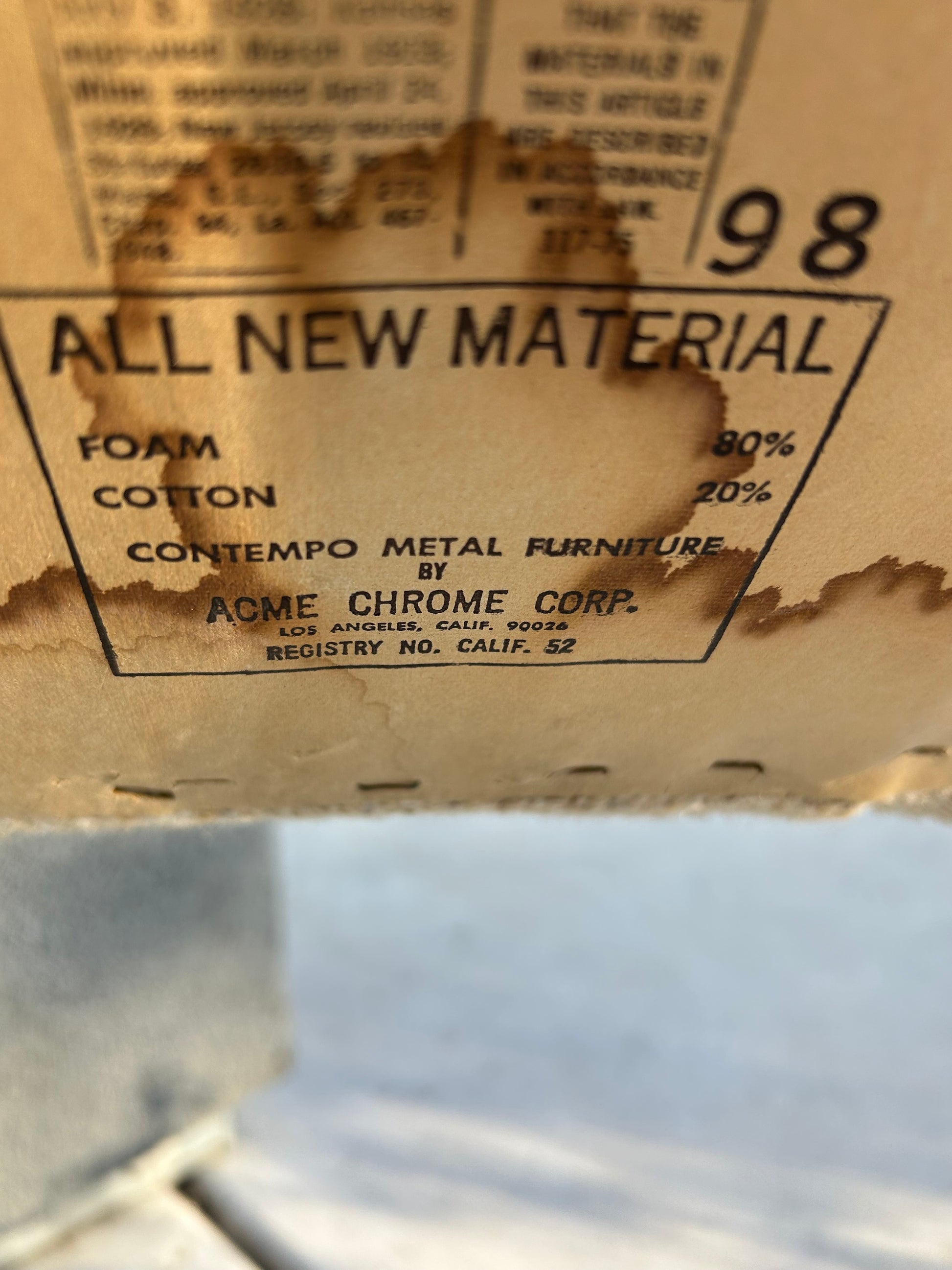 Tag under seat by Acme Chrome Corp.