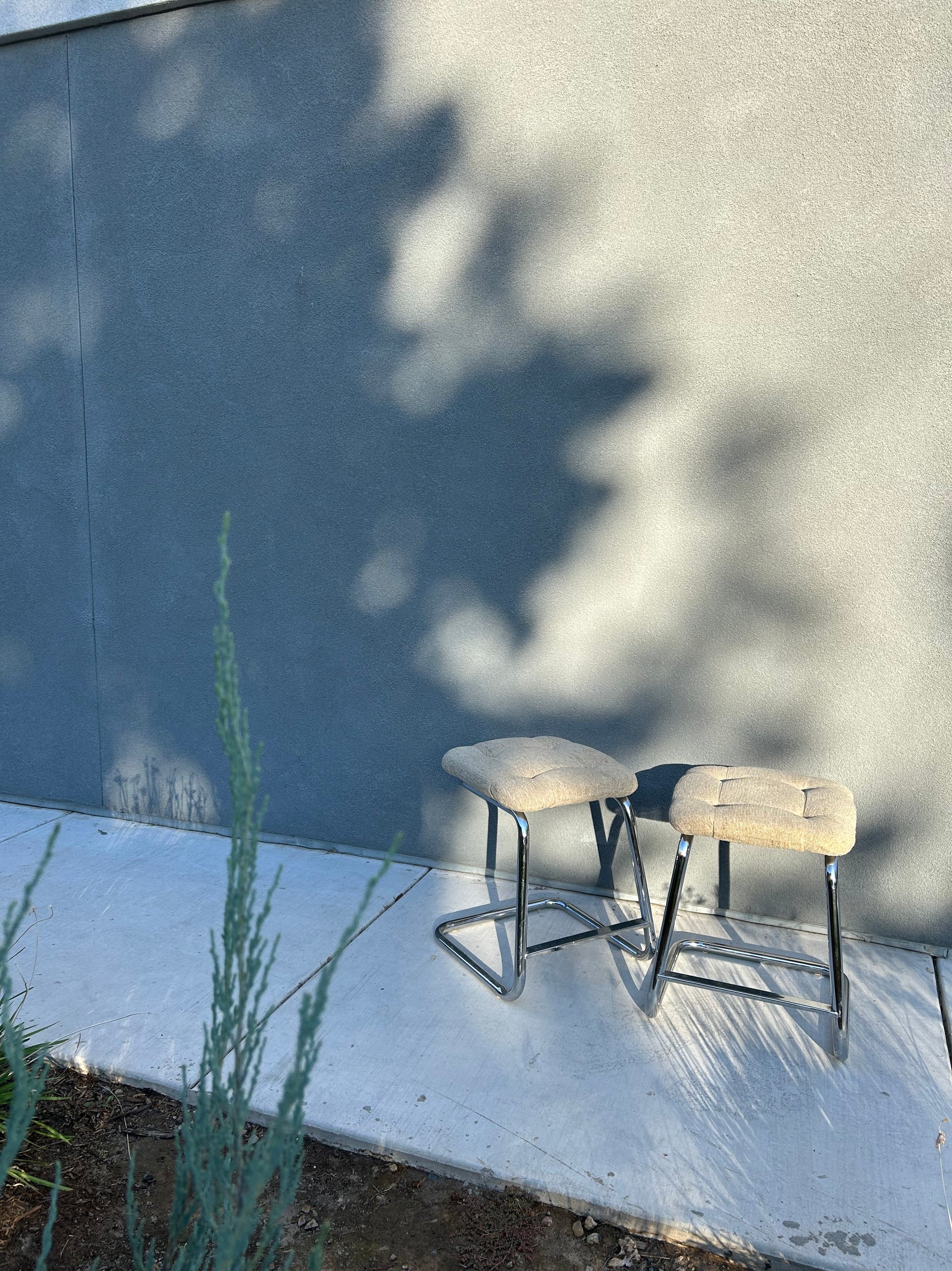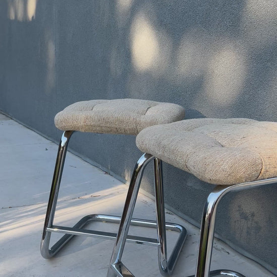 Pair of Tubular Chrome Cantilever Counter Stools, Circa 1970s