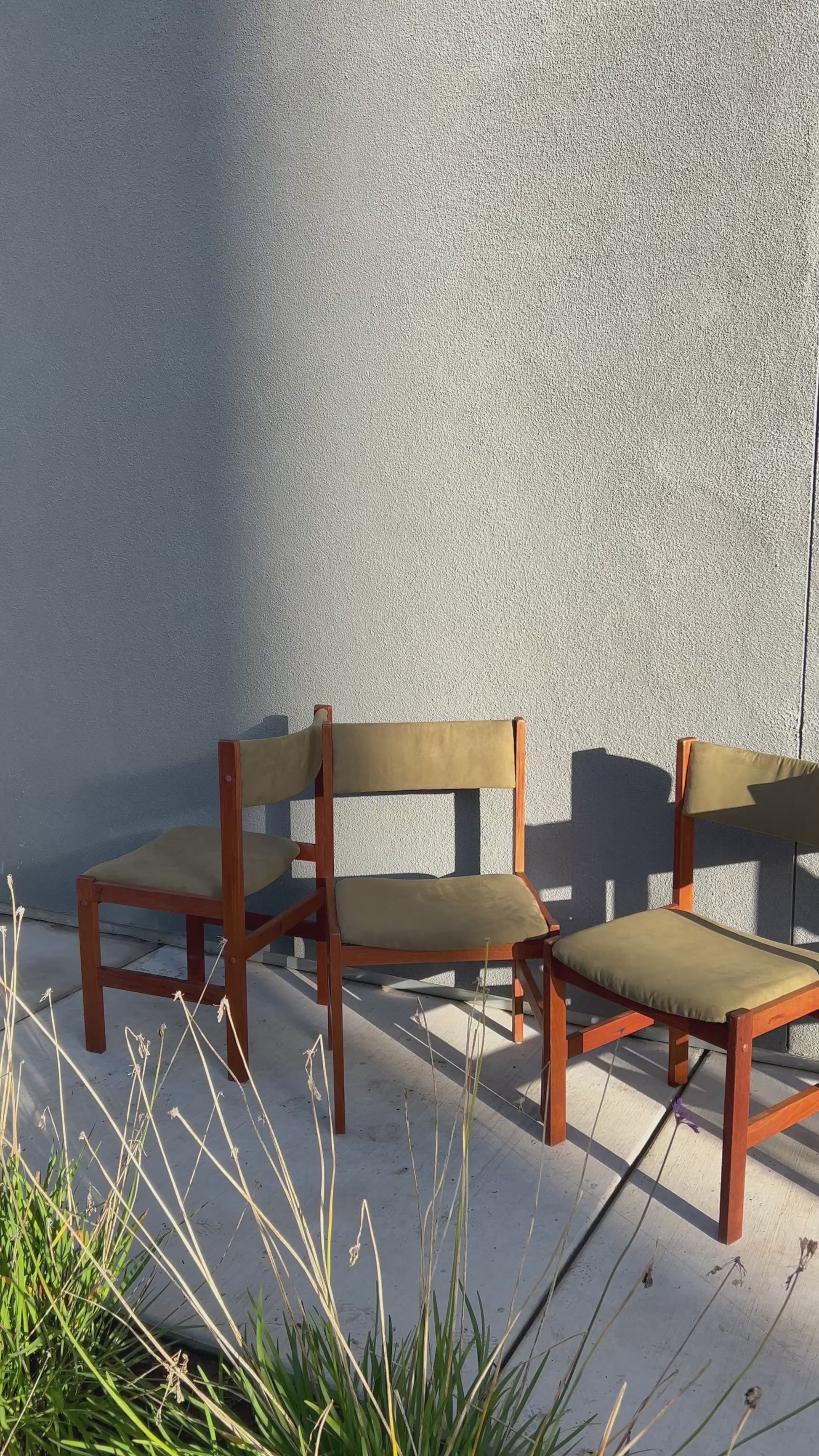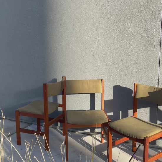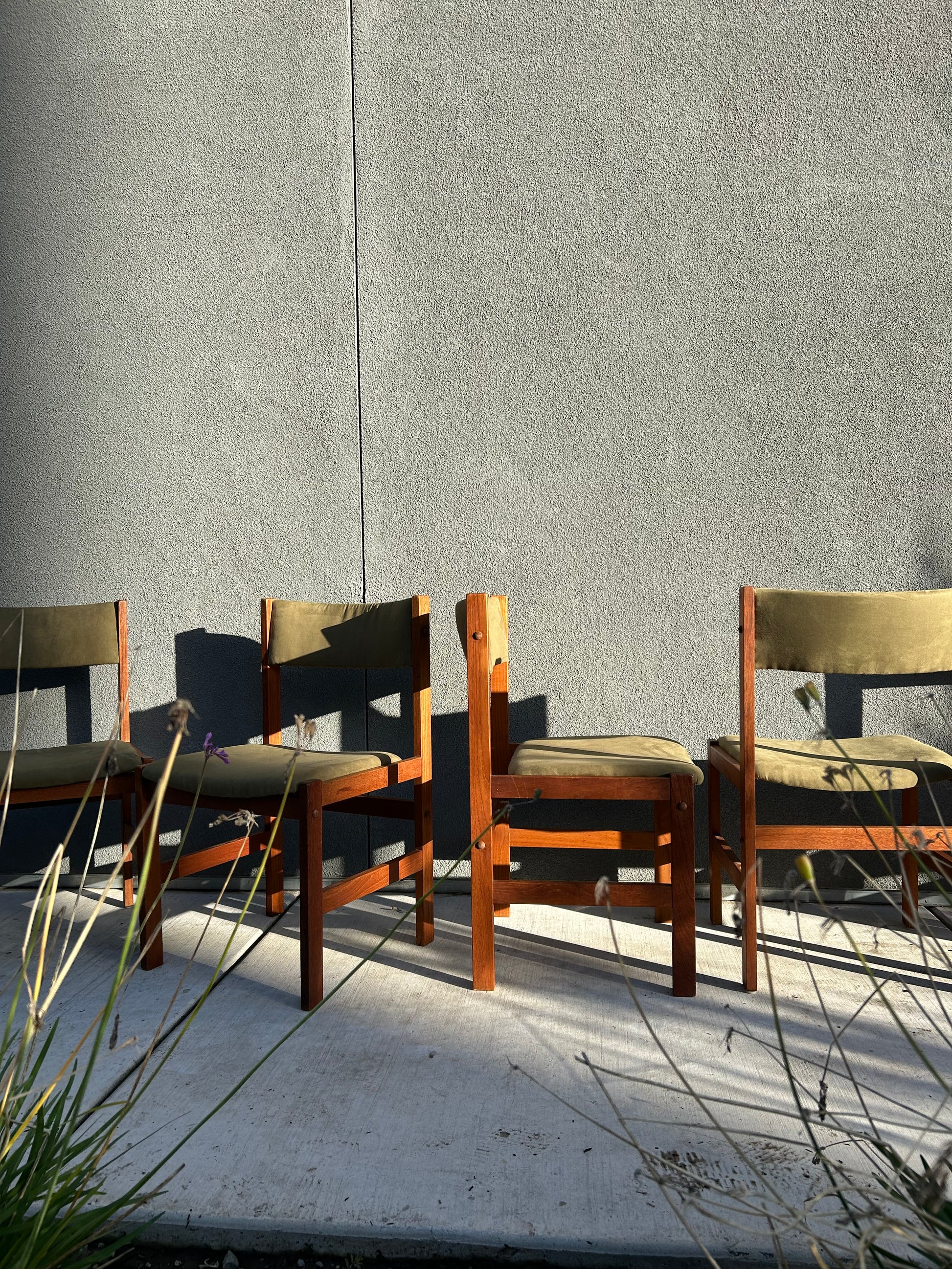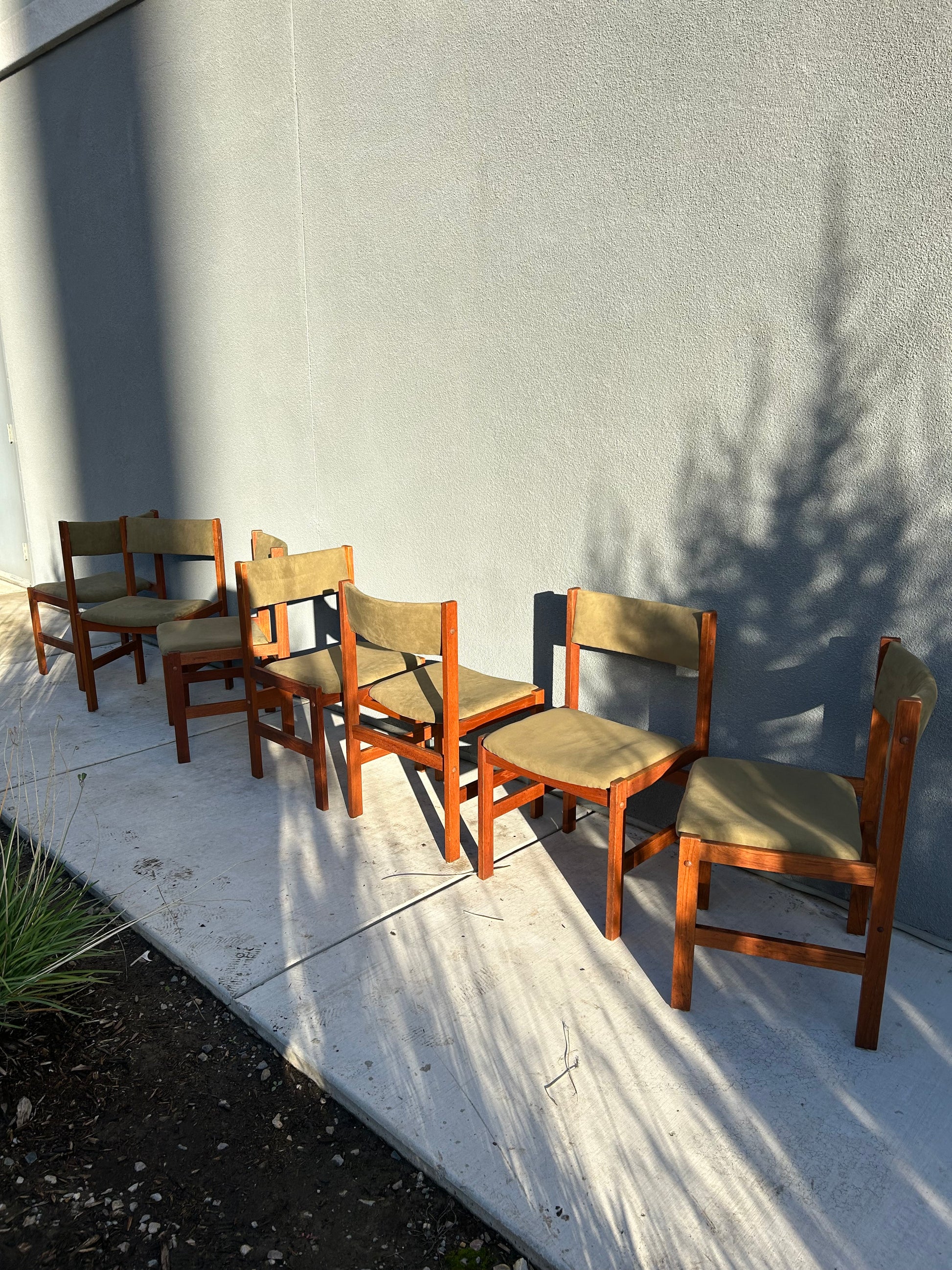 Danish Teak Green Faux Suede Dining Chairs, 7 Available