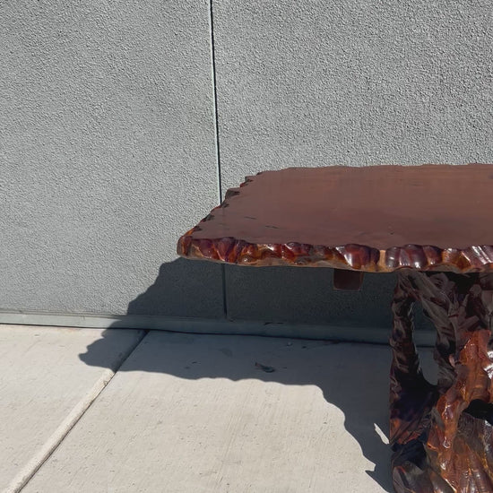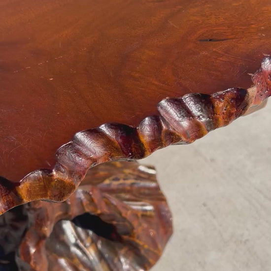 Hand Carved Redwood Pedestal Coffee Table, Circa 1960s
