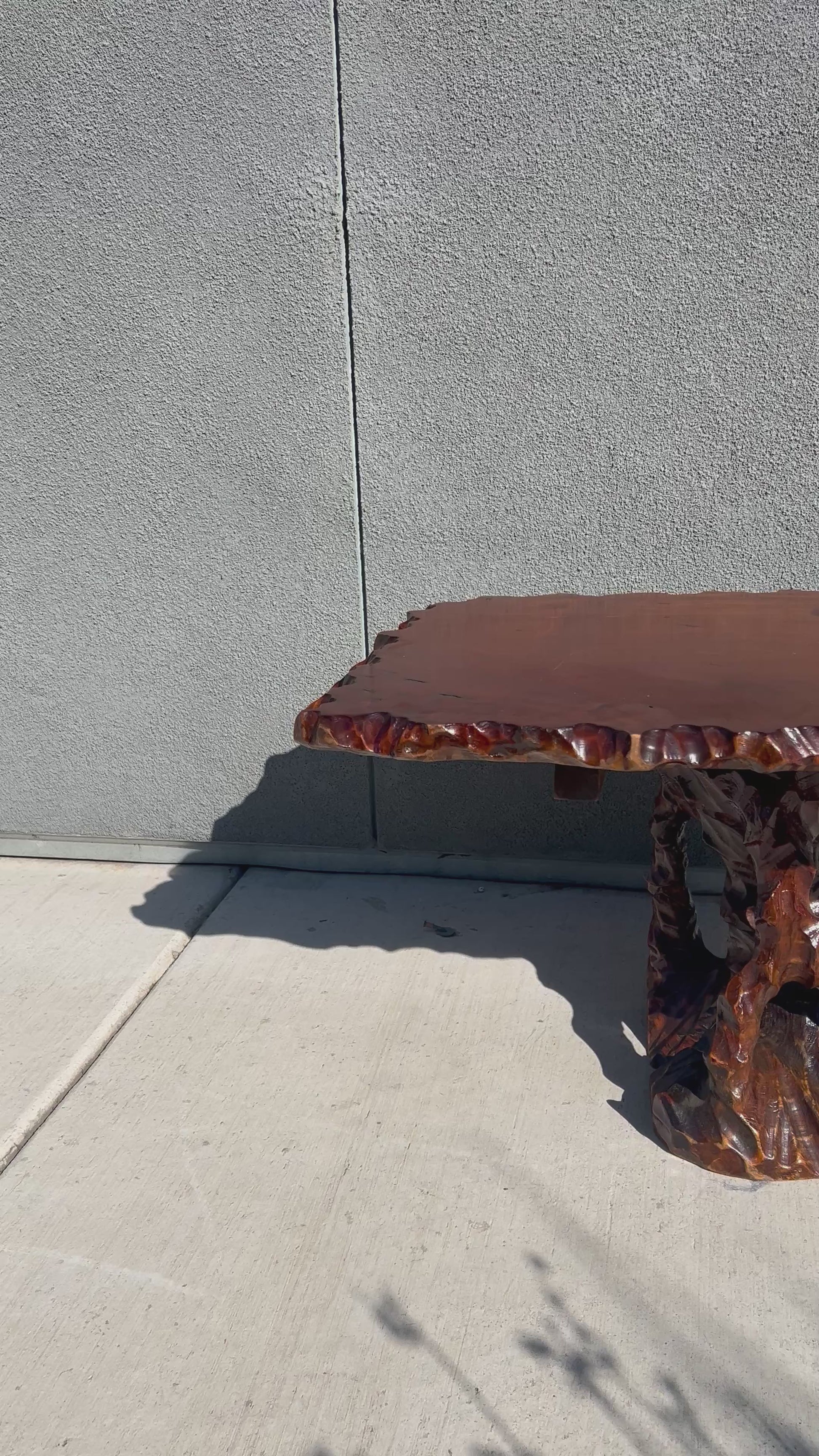 Rare carved wood coffee table from the Asian Revival era. Root-style tables rose to popularity in the 1950s–60s, but most surviving pieces are smaller stools or plant stands. A full-size coffee table like this is an uncommon find.