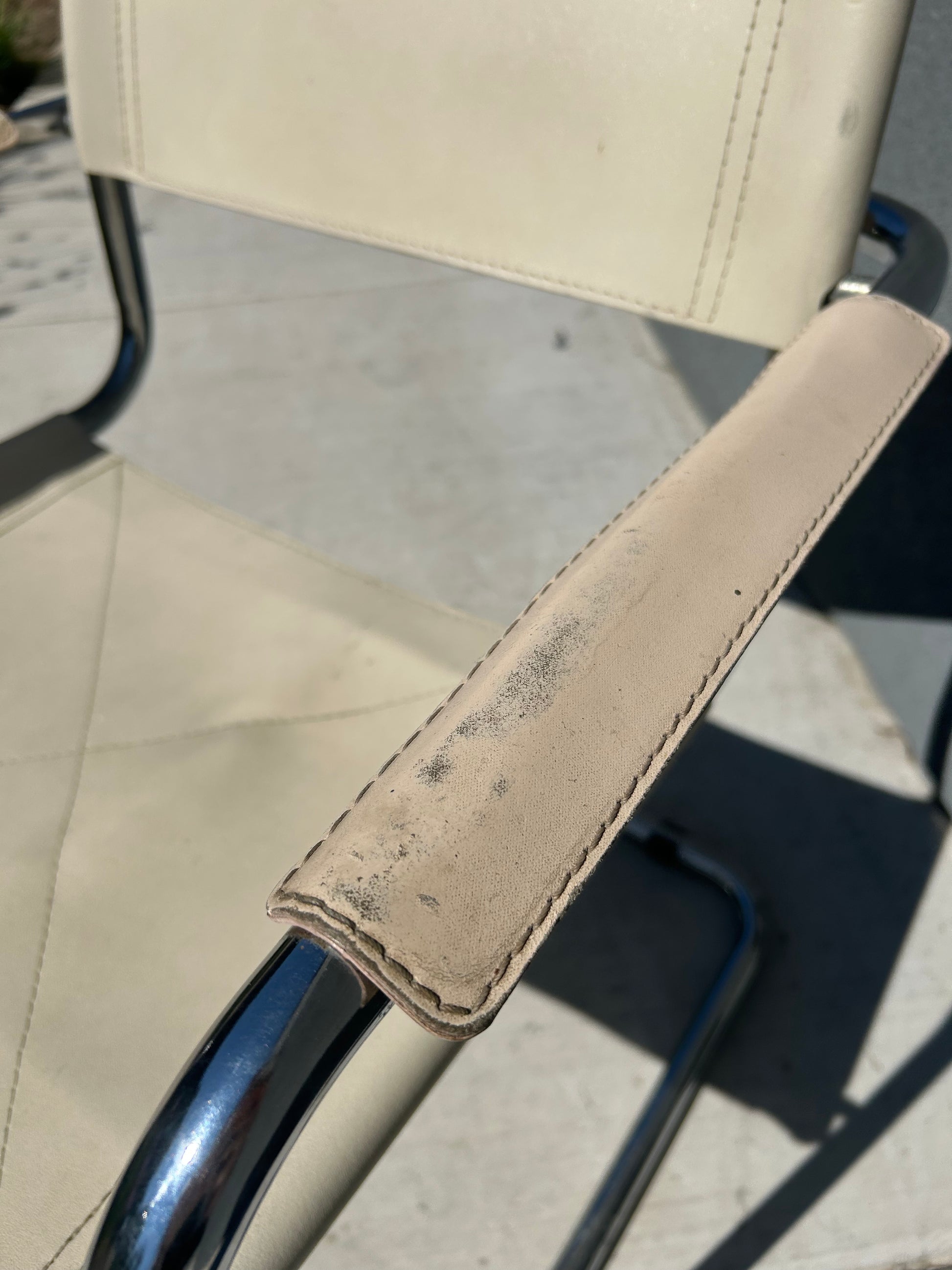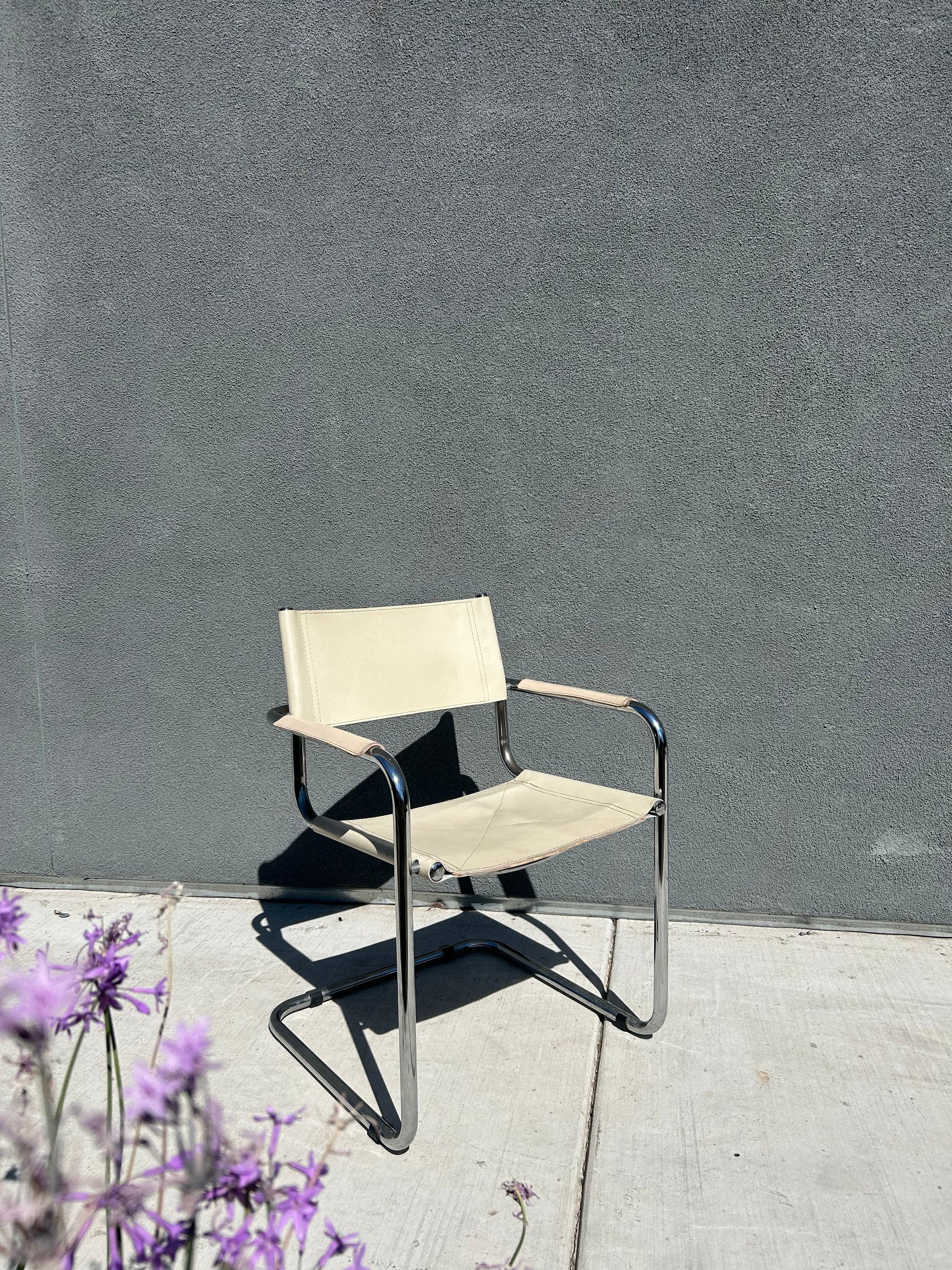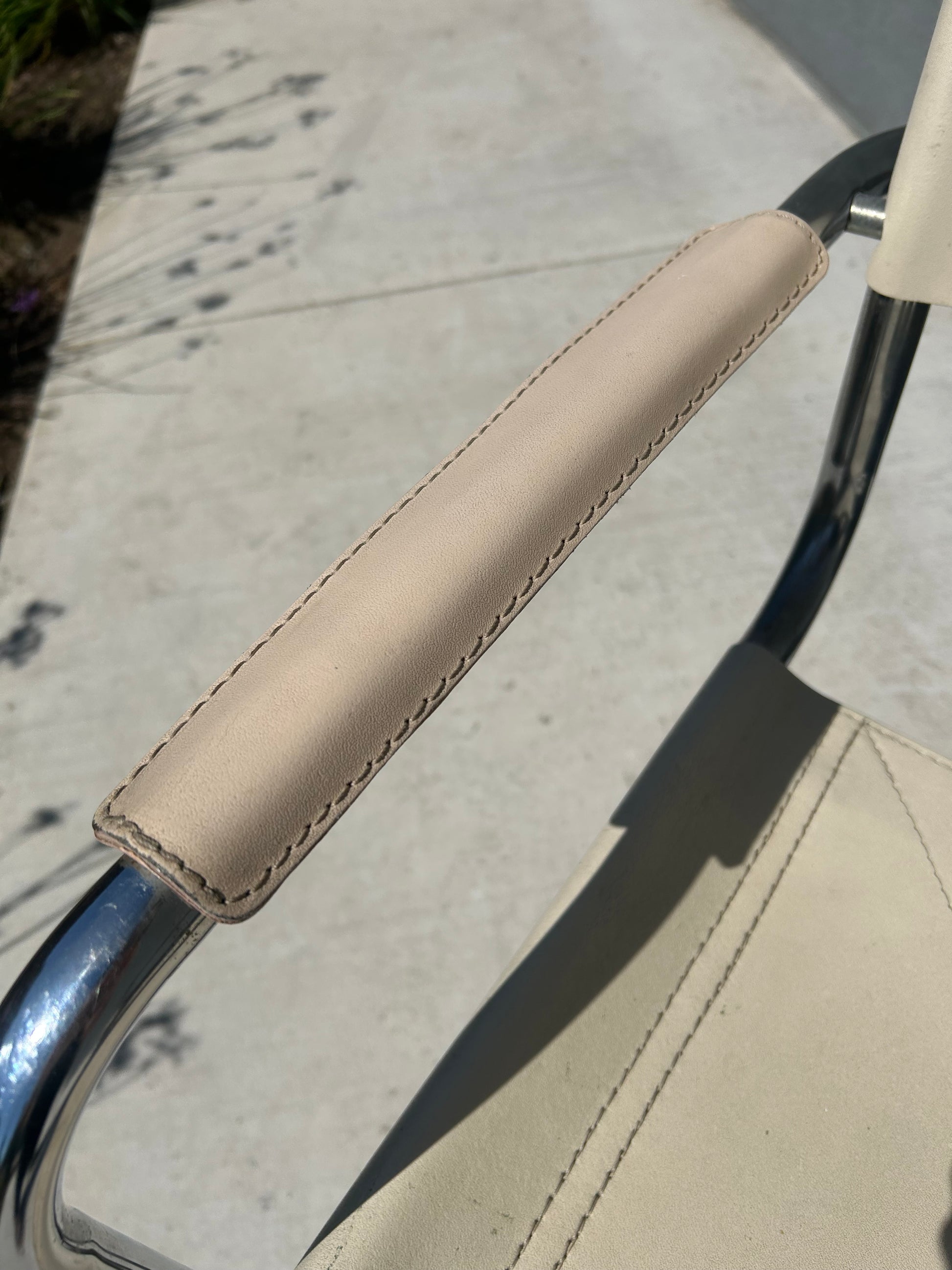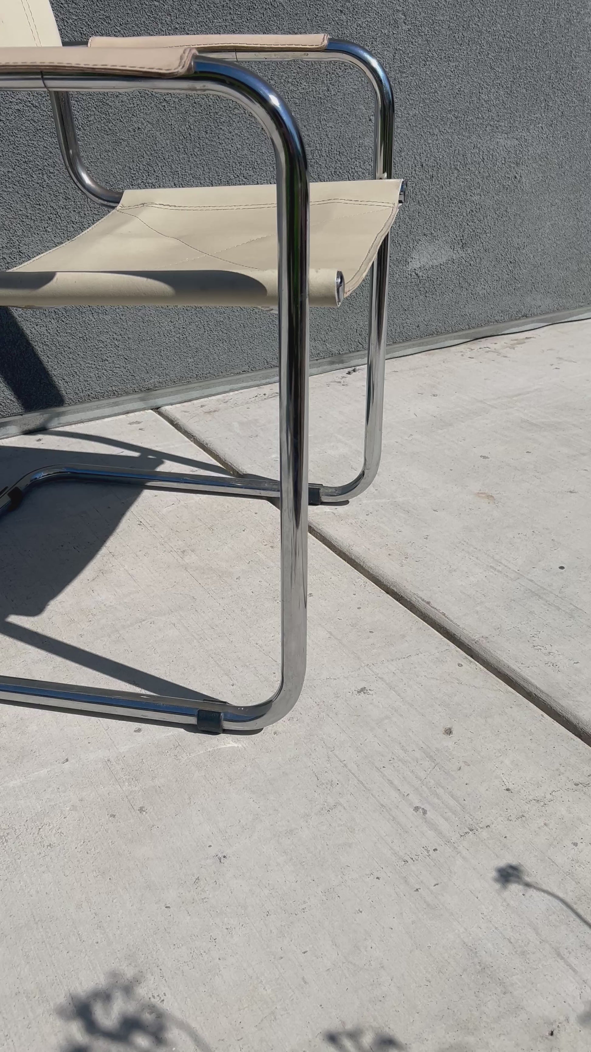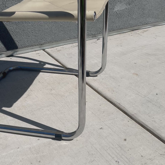 Marcel Breuer Style Beige Leather Tubular Chrome Chair, Circa 1970s
