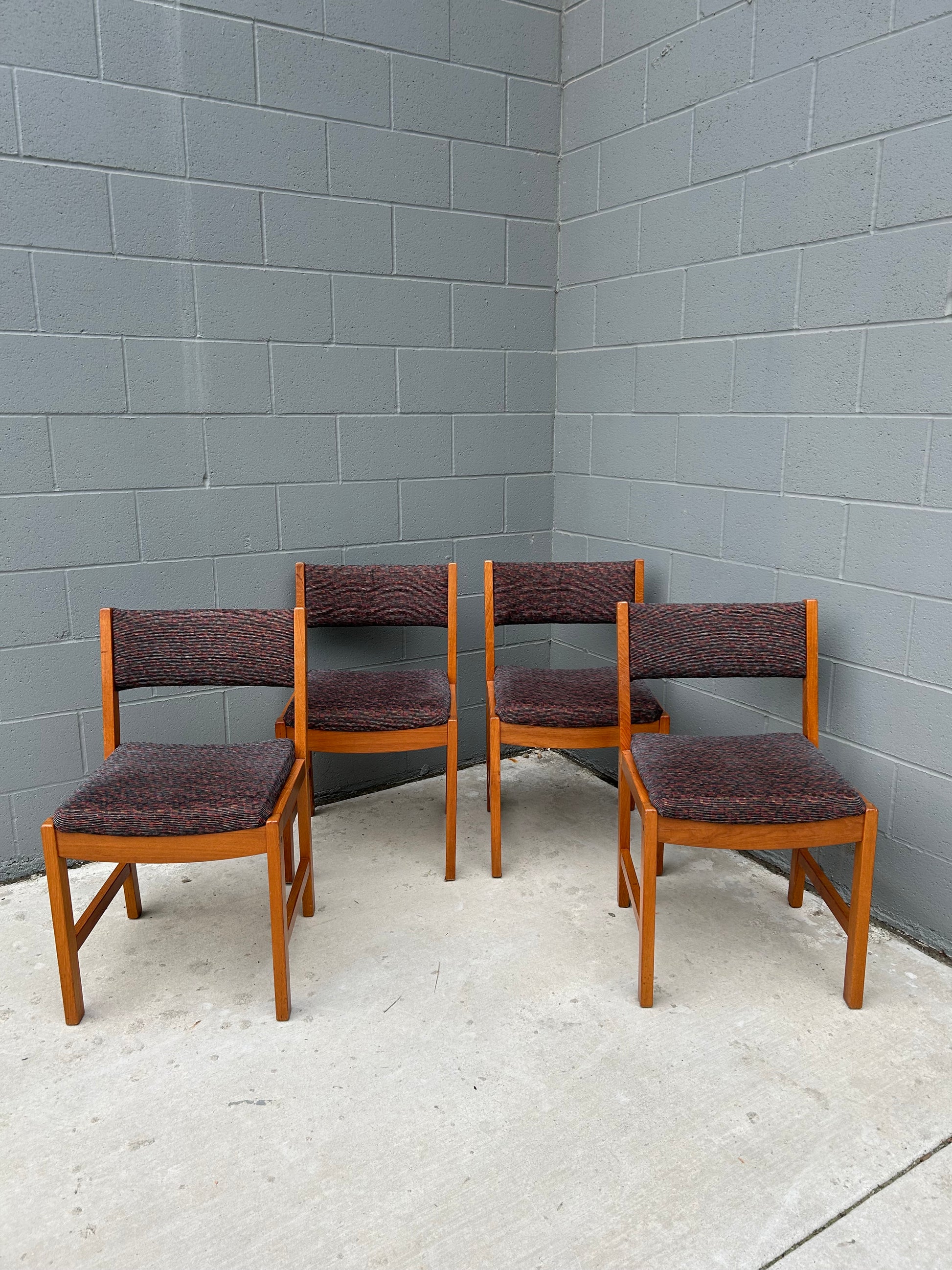 MCM Solid Teak Dining Chairs Scandinavian Modern, Sold as a Set of 4