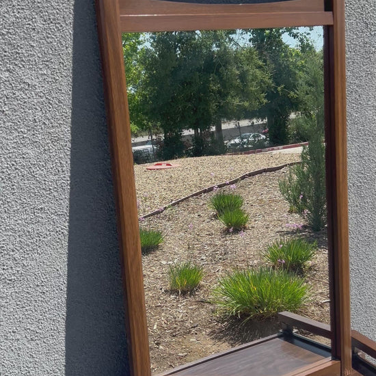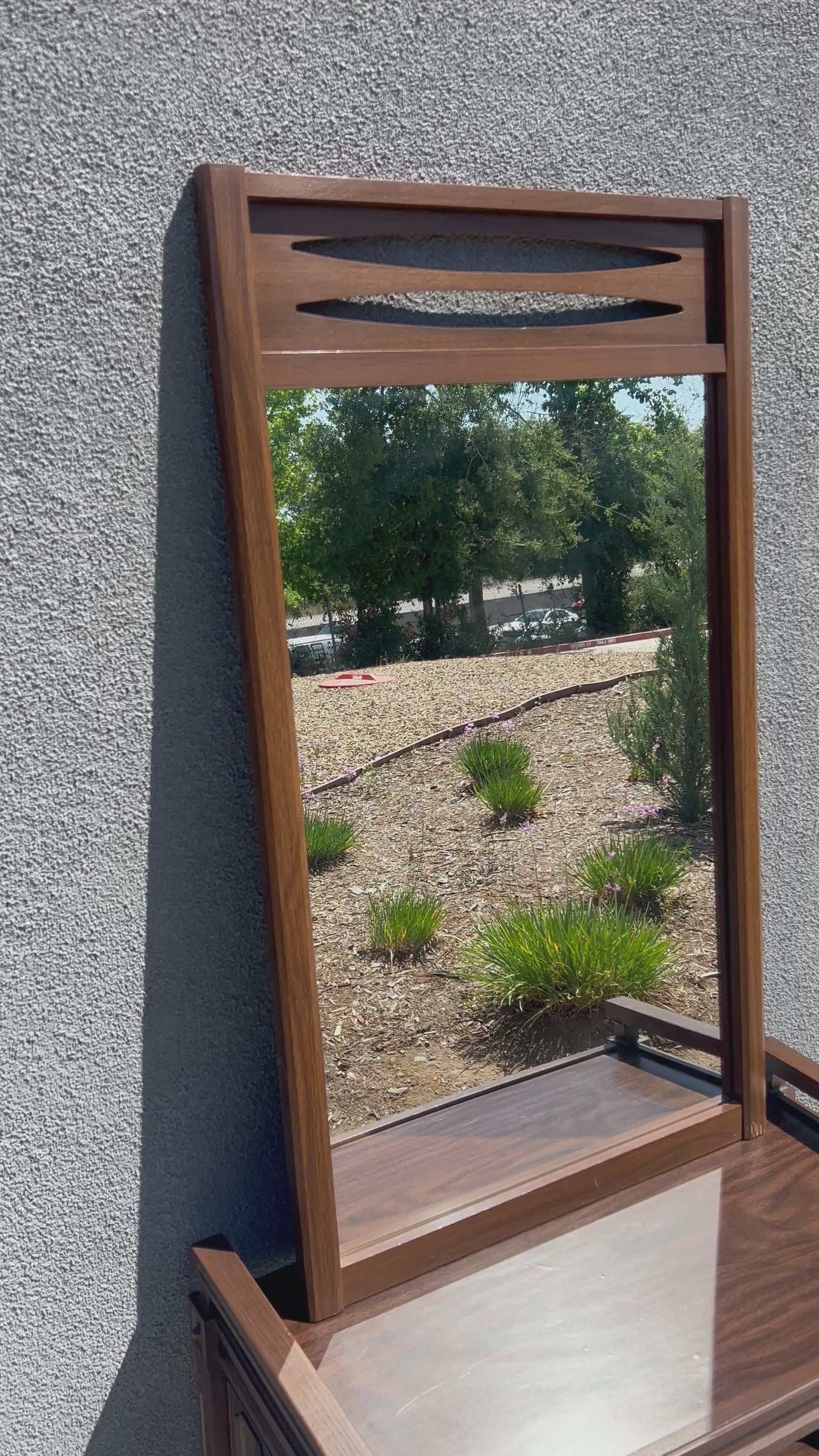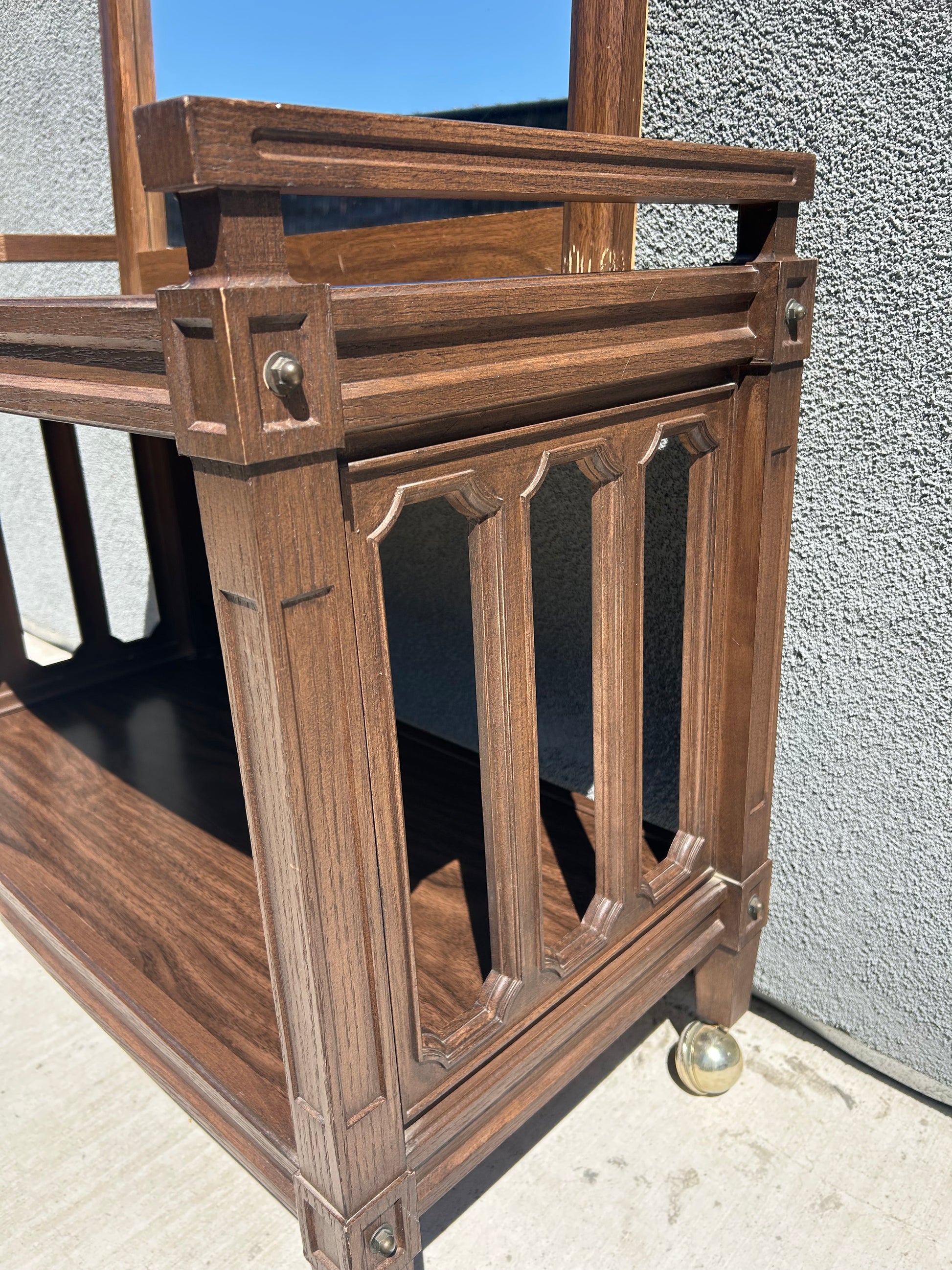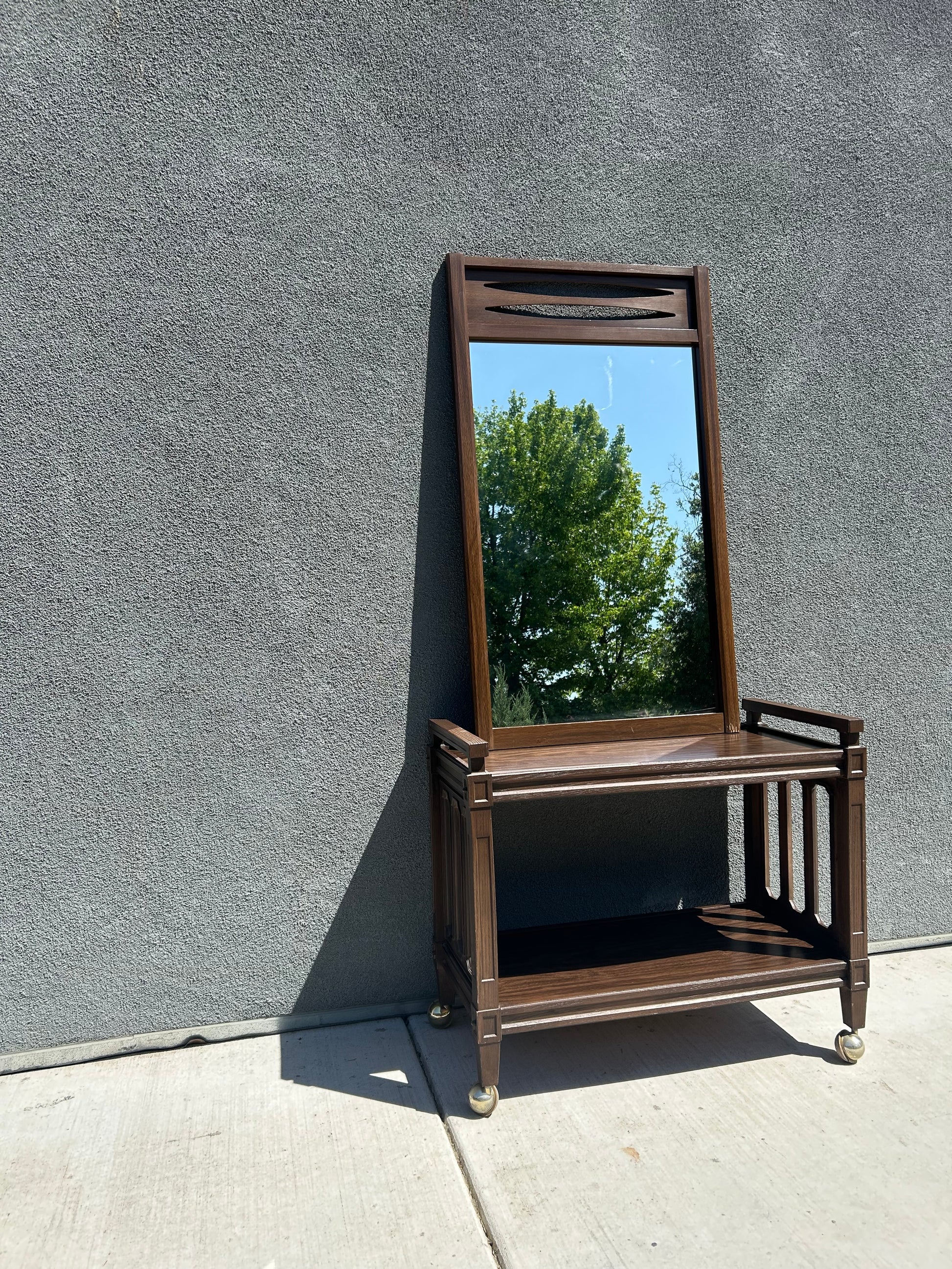 MCM Walnut Vinyl Cart and Mirror Set, Circa 1970s