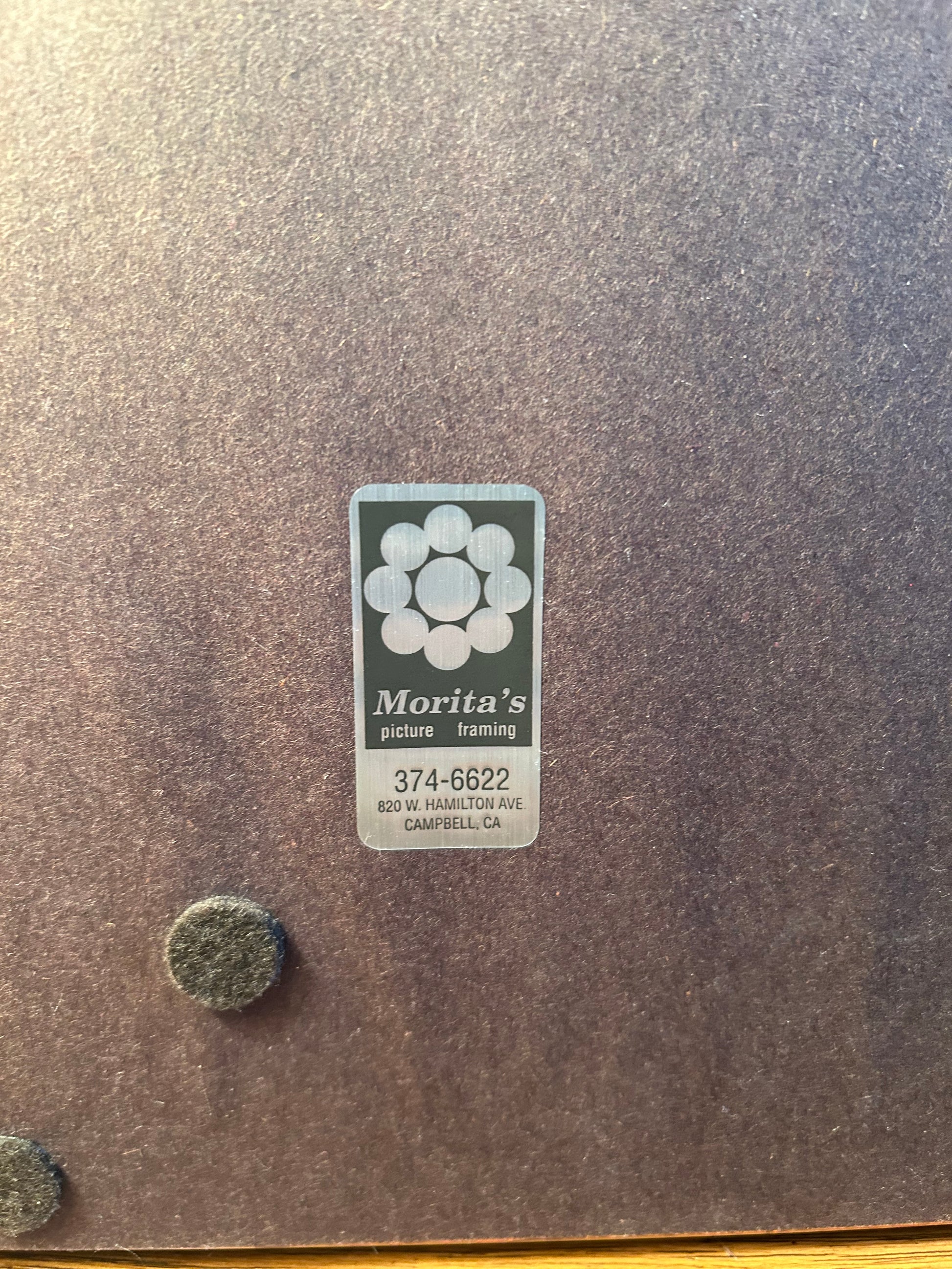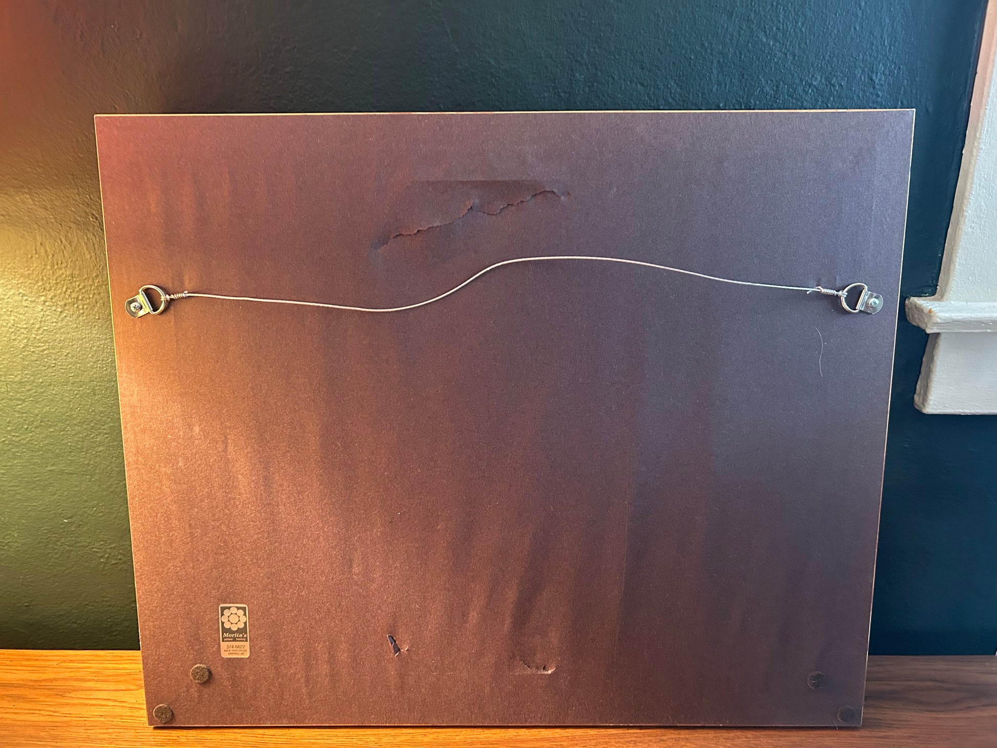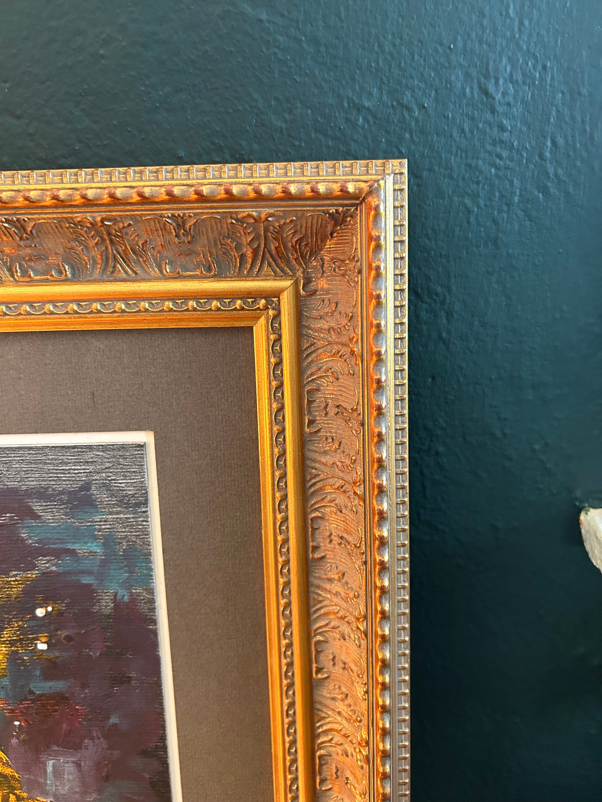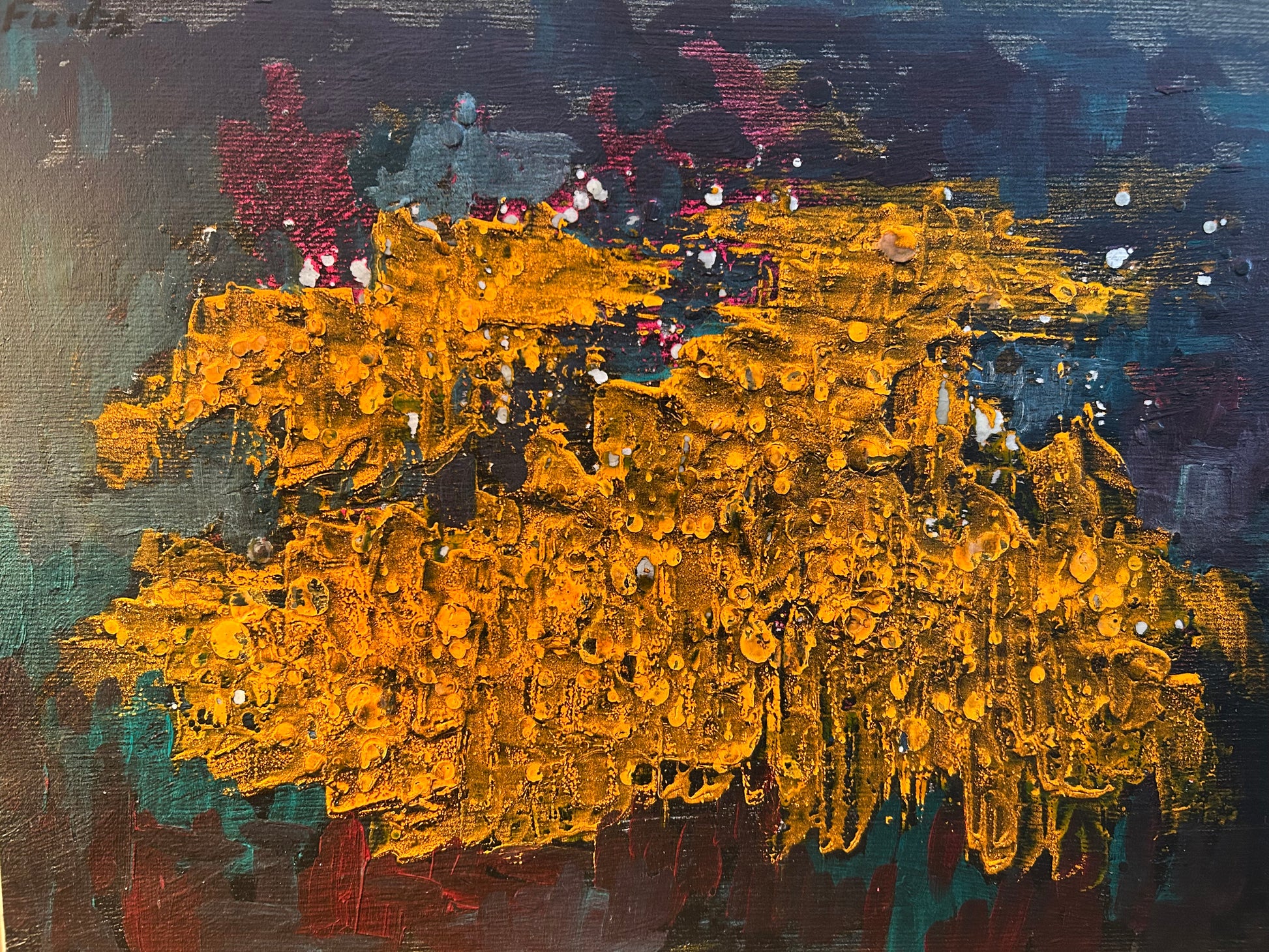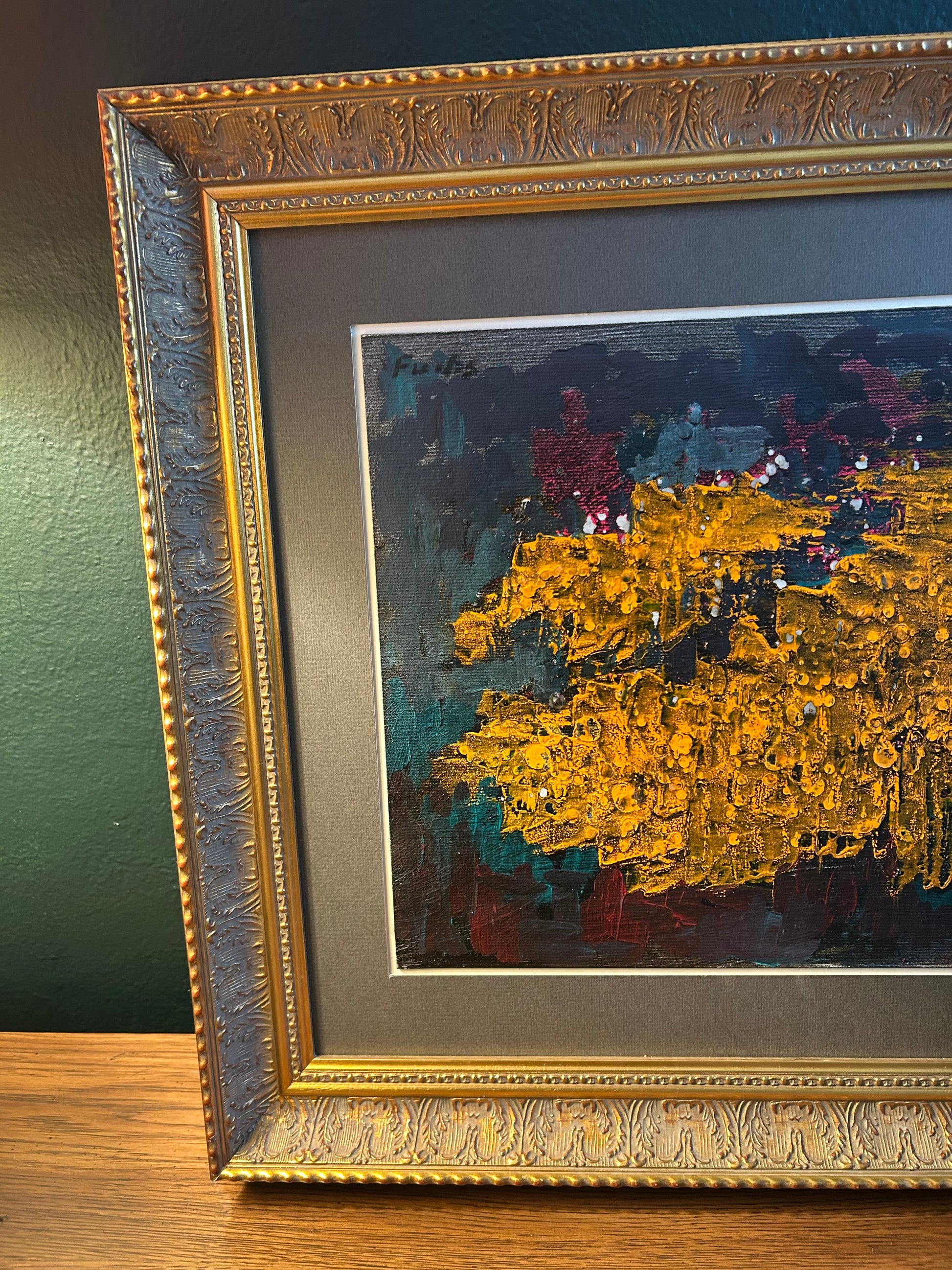 MCM Yellow, Red, Blue Abstract Original Painting with Professional Matting and Gold Frame. Painting on wood board. Framed by Moritas Gallery.