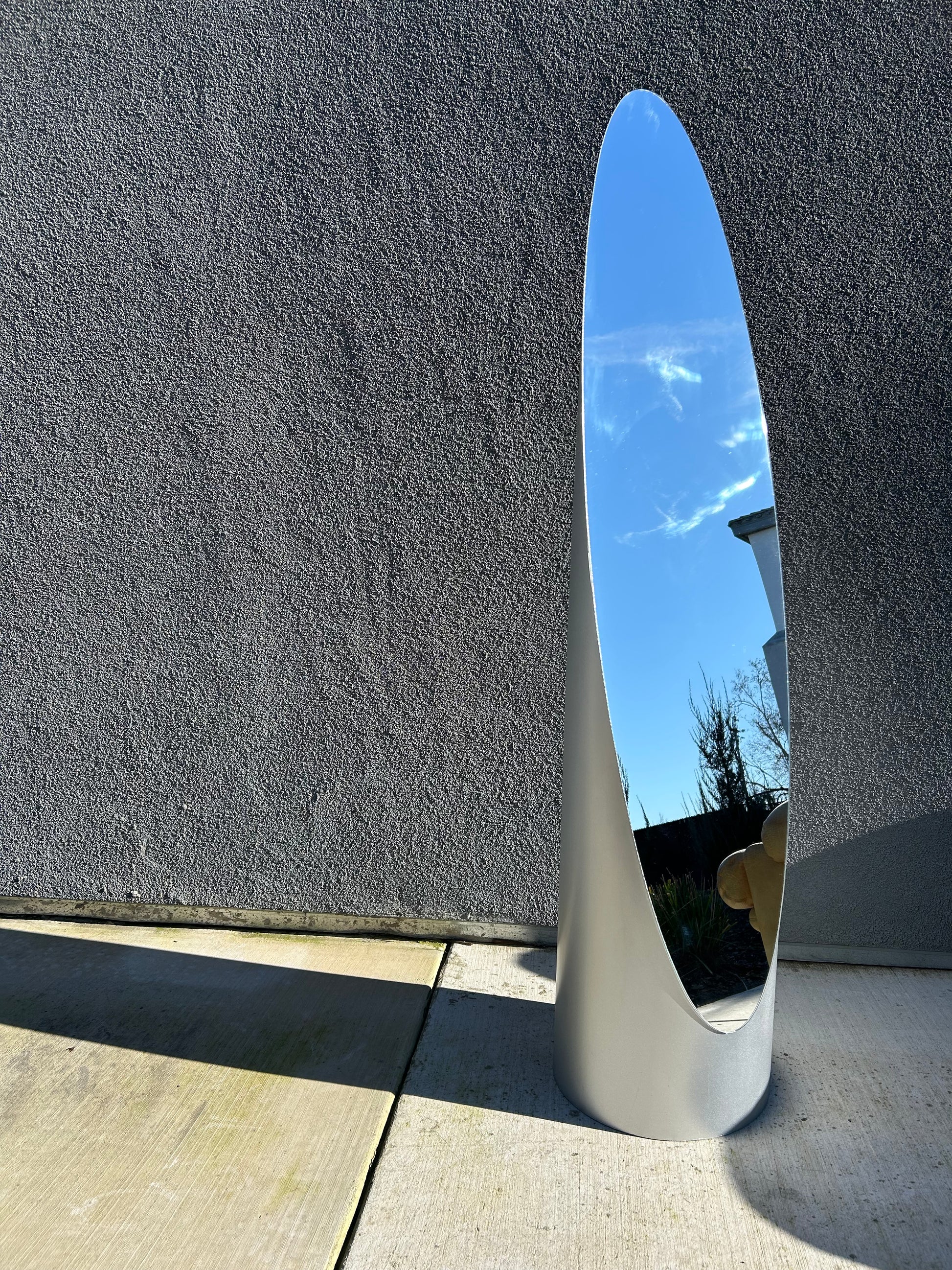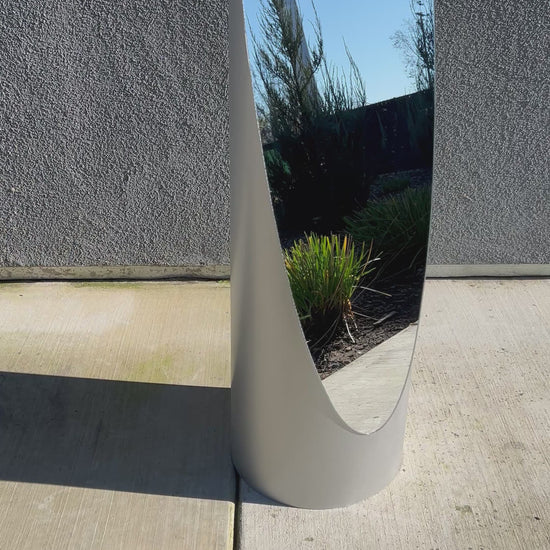 1980's Gaia Contemporary Lipstick mirror in a gorgeous silver color. Design makes this a big and functional statement piece, without compromising space. It fits perfectly into small corners if needed. In excellent condition without any cracks, a few small scratches to silver base.