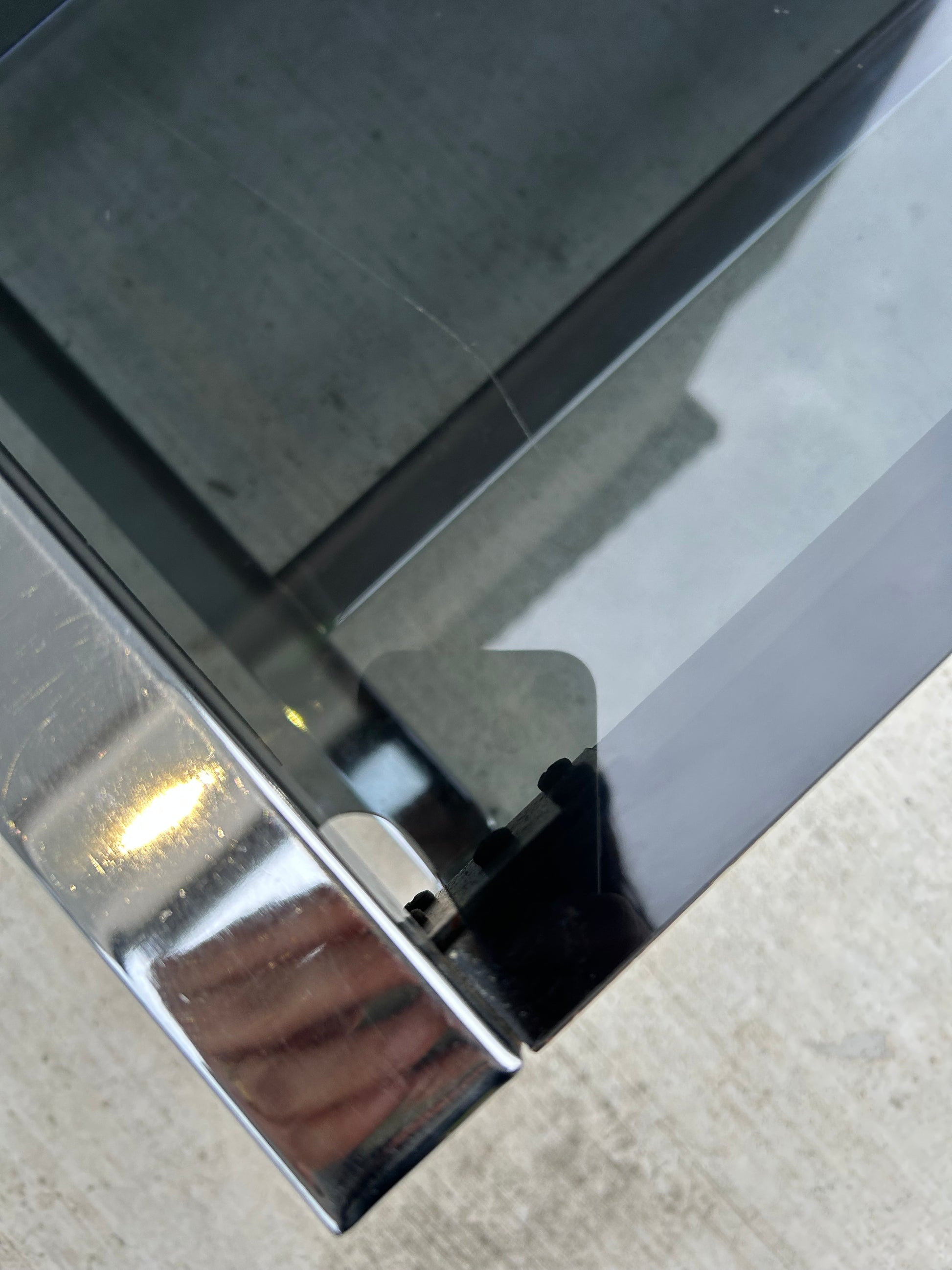 Mid Century Walnut Chrome and Smoked Glass Coffee Table