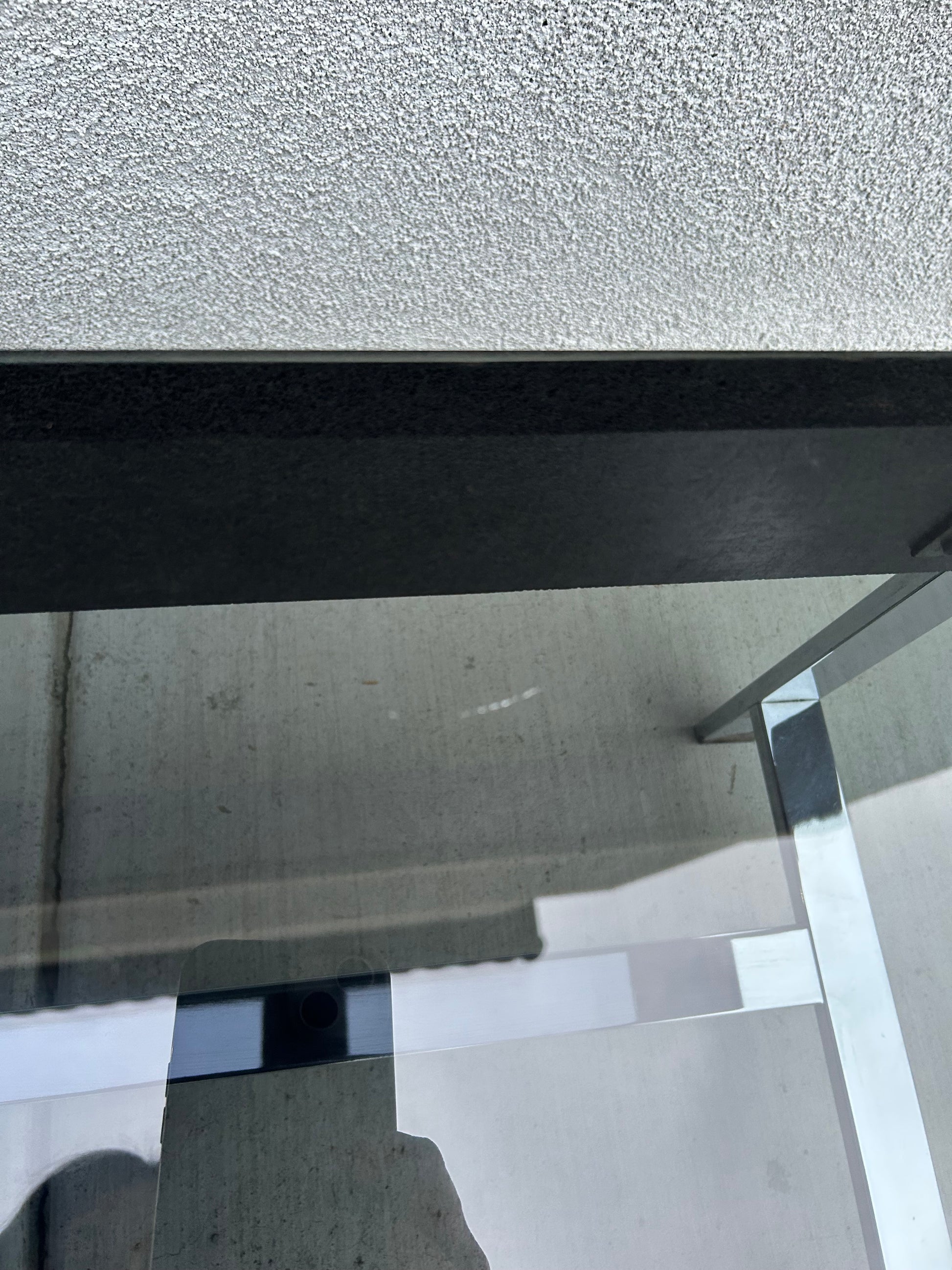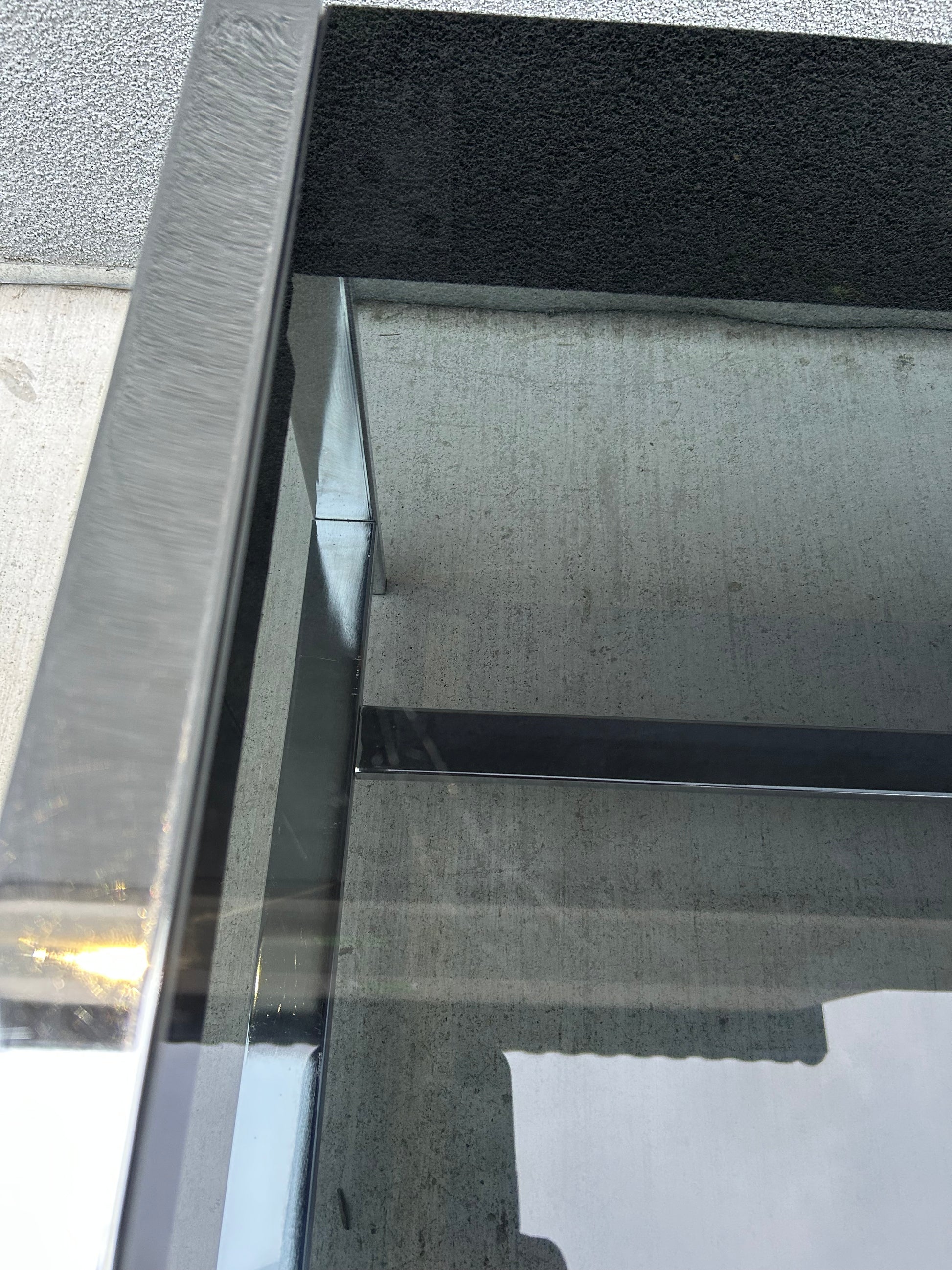 Condition: has some damage to walnut veneer on one side and some chip on glass corner. See photos. Priced accordingly.