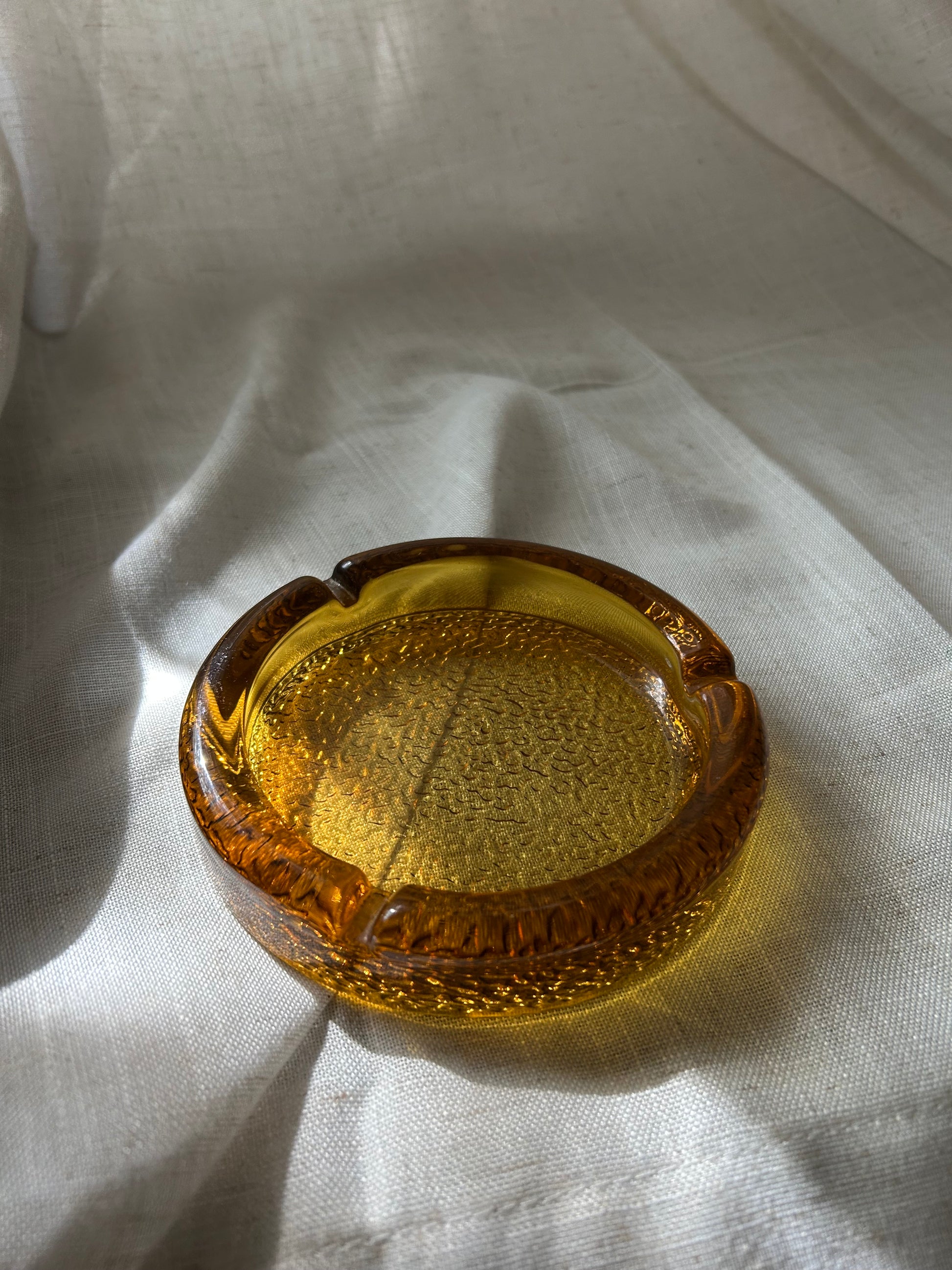 vintage ashtray, amber glass, retro decor, mid century modern, heavy glass ashtray, collectible glassware, MCM ashtray, textured glass, 1960s decor, glass smoking accessory