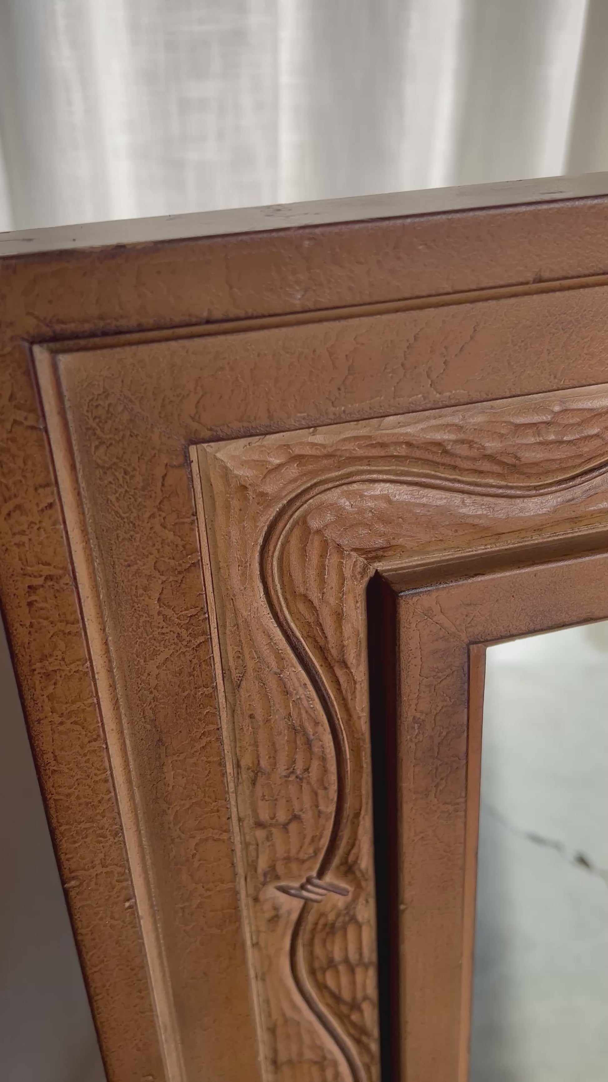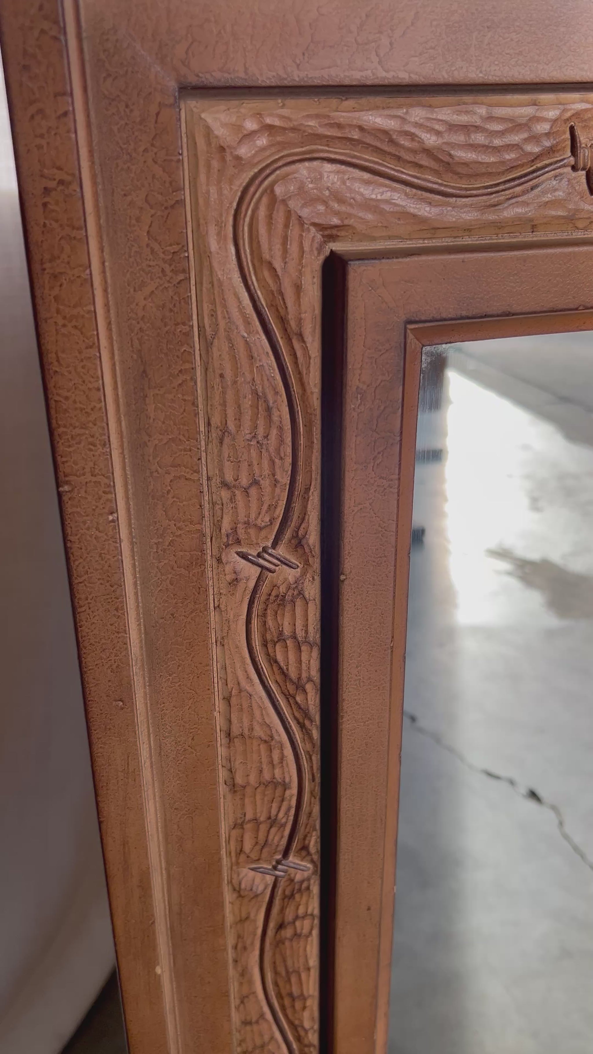 Vintage Carved Faux Bois Barbed Wire Mirror, Circa 1970s