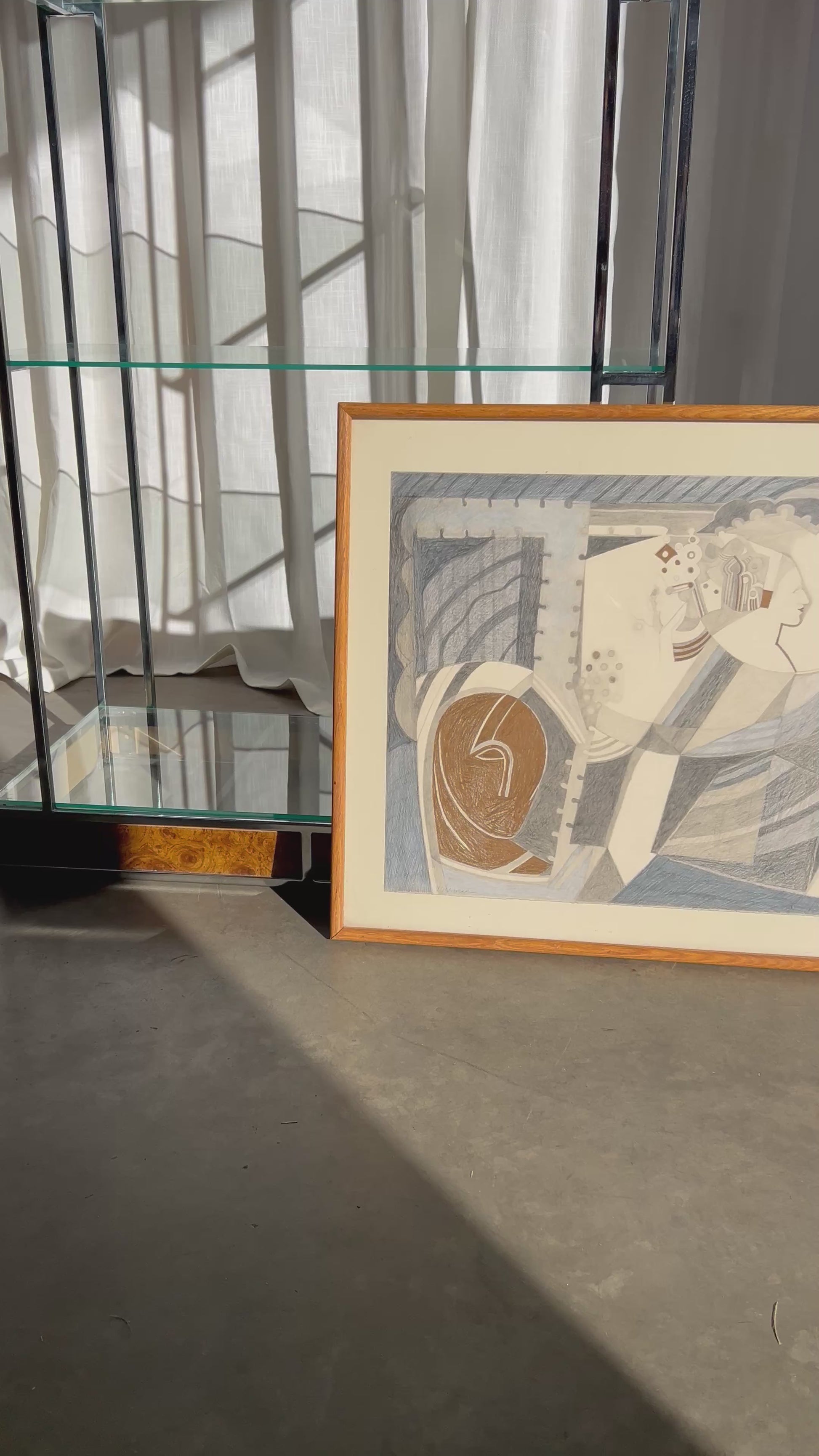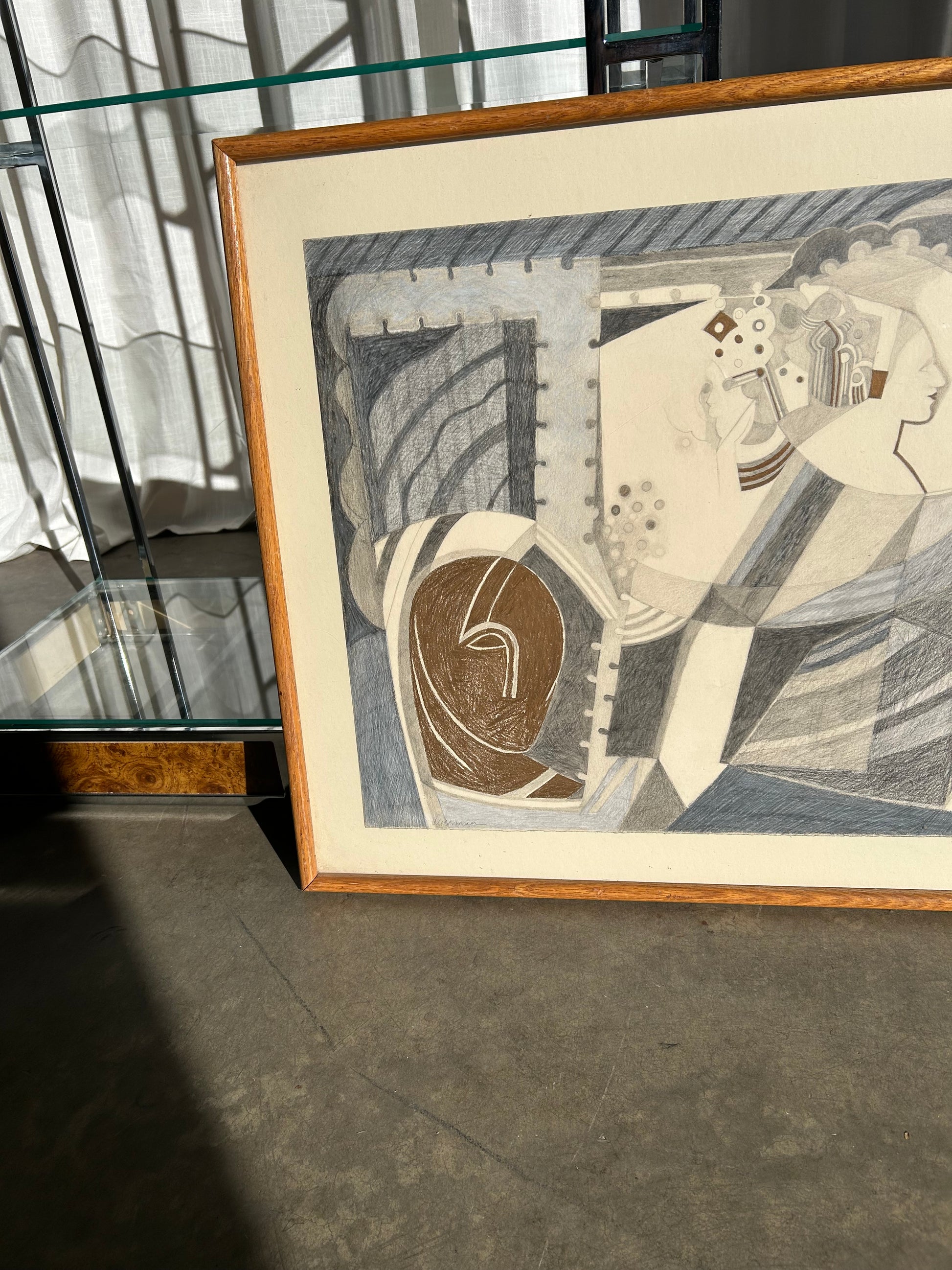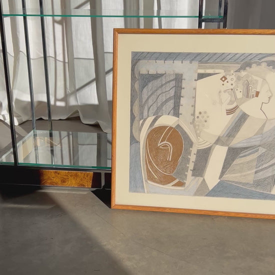 Vintage Cubist Abstract Drawing, Circa 1980s