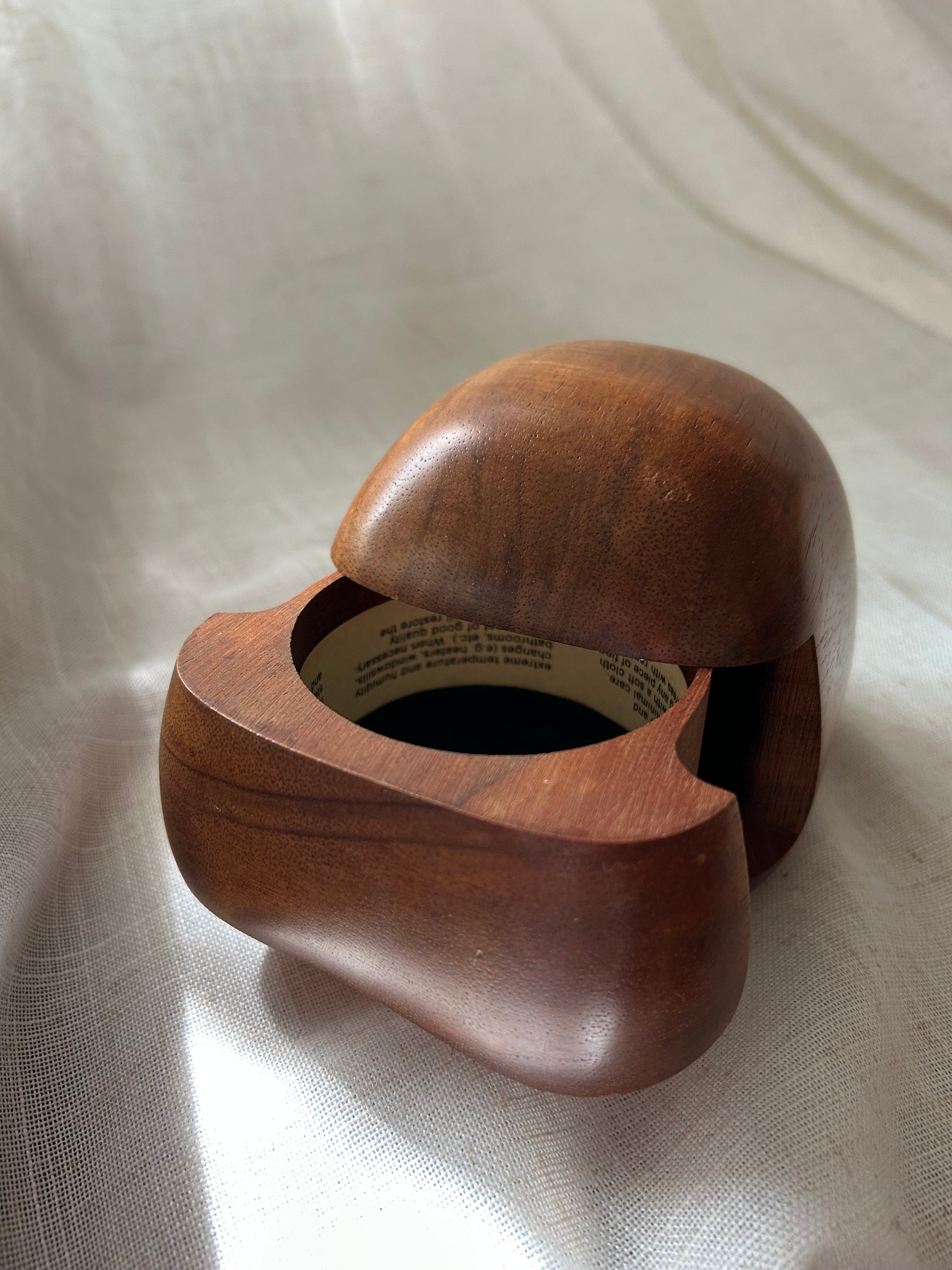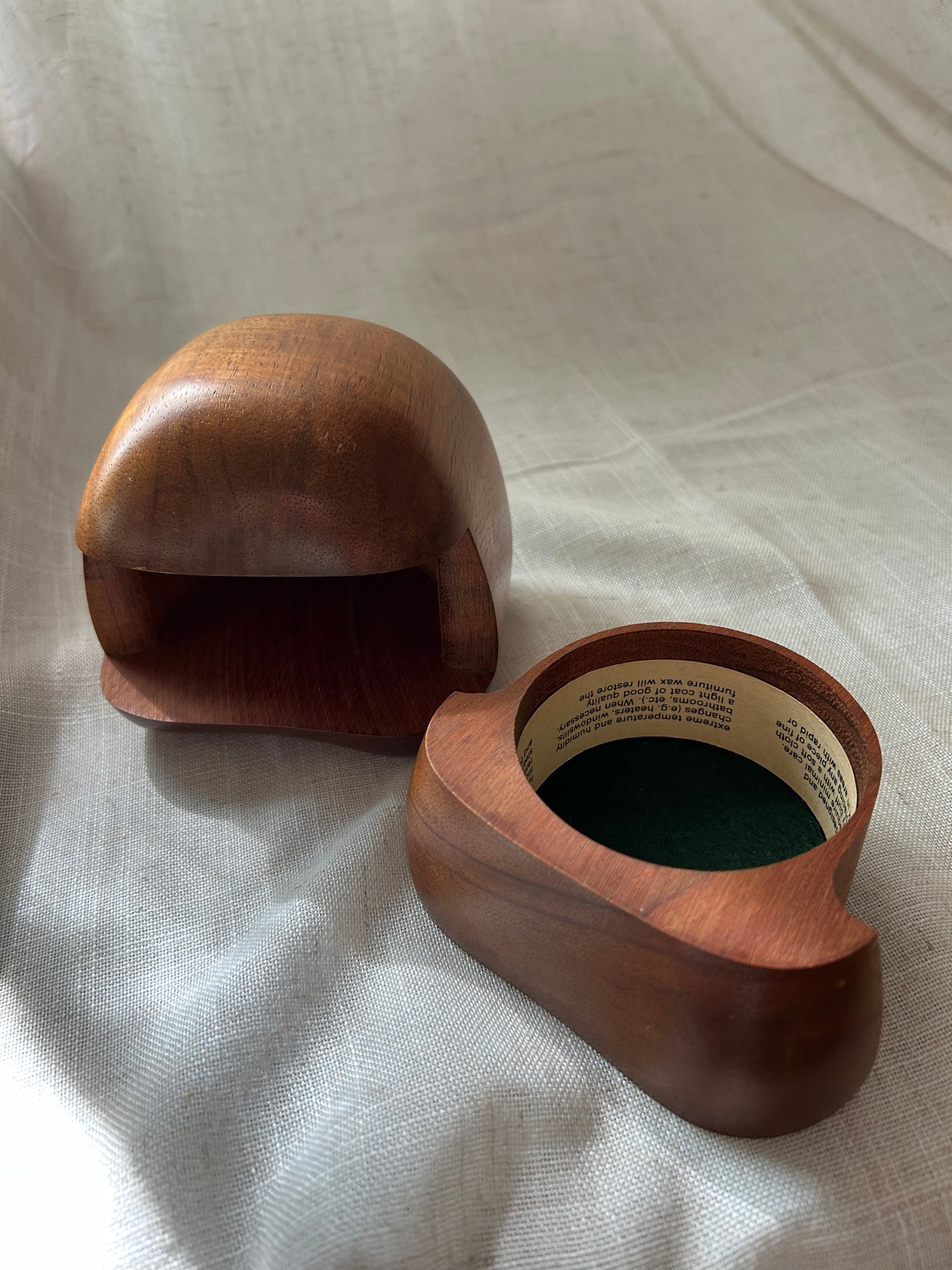 Designed during the Mid-Century Modern era, this unique lidded box was often used to store small treasures, jewelry, or keepsakes, and is also admired purely as a decorative object. Santner’s pieces are highly collectible and increasingly difficult to find, making this a must-have for serious collectors of MCM design or artisan woodwork.