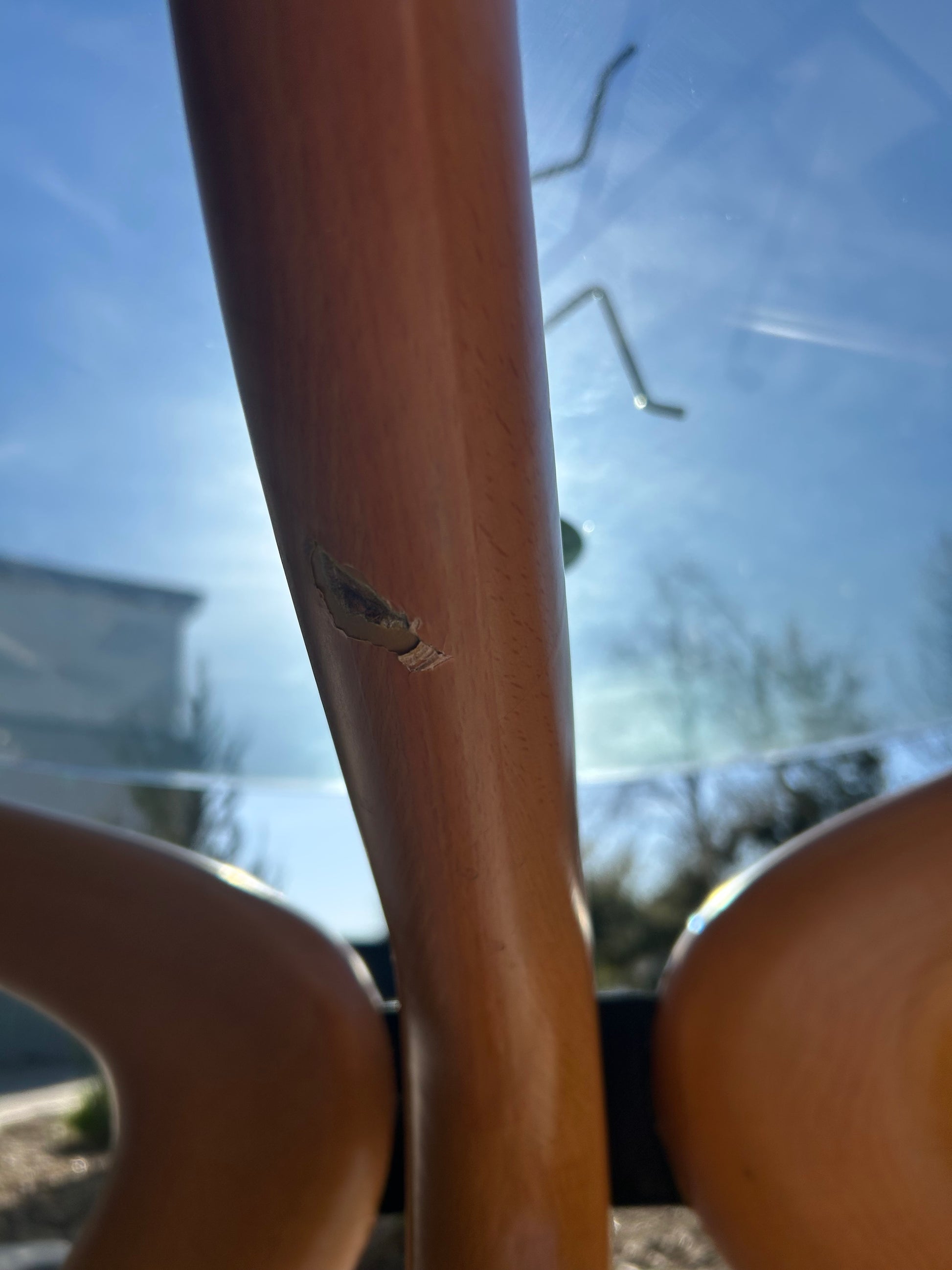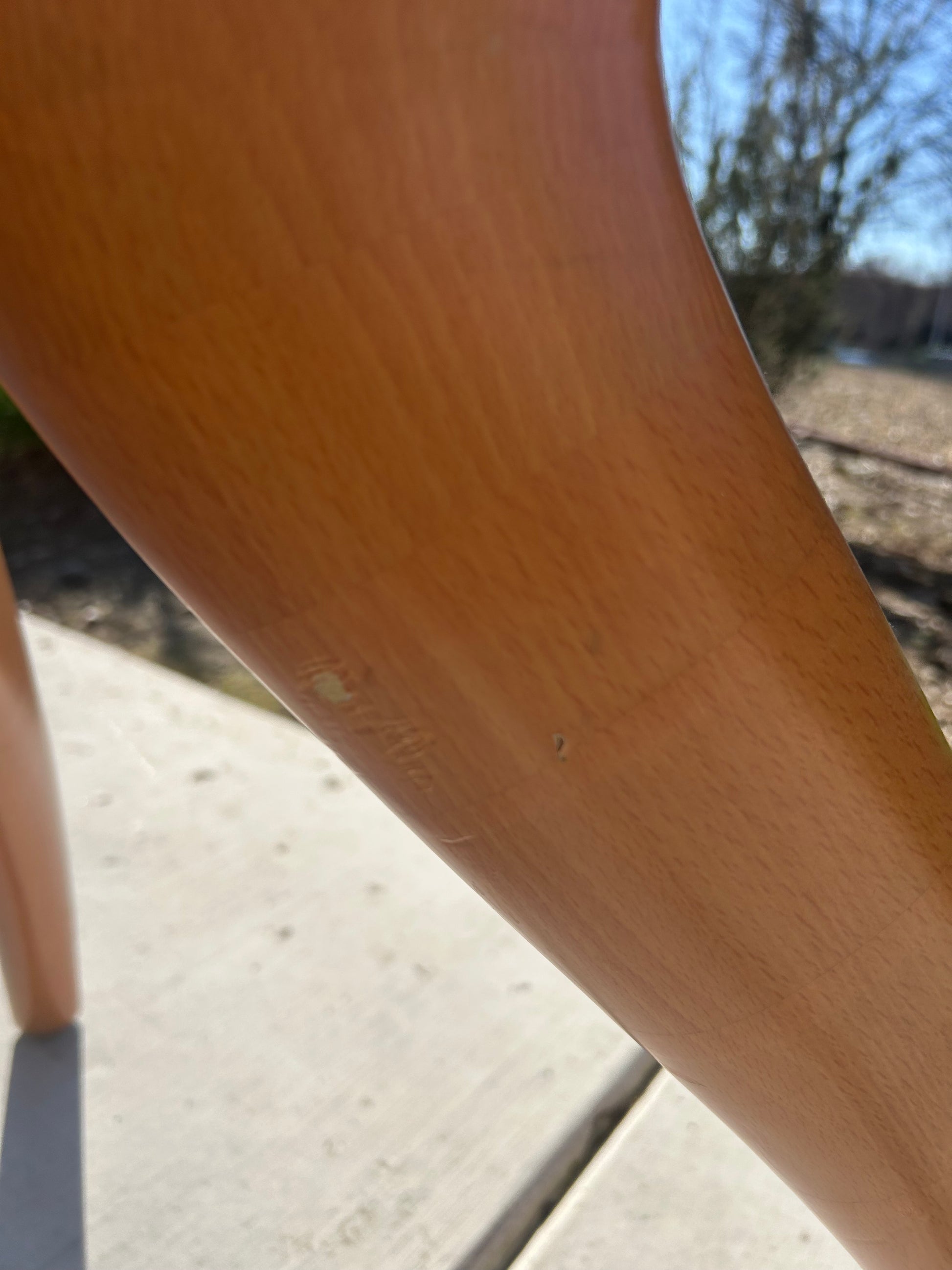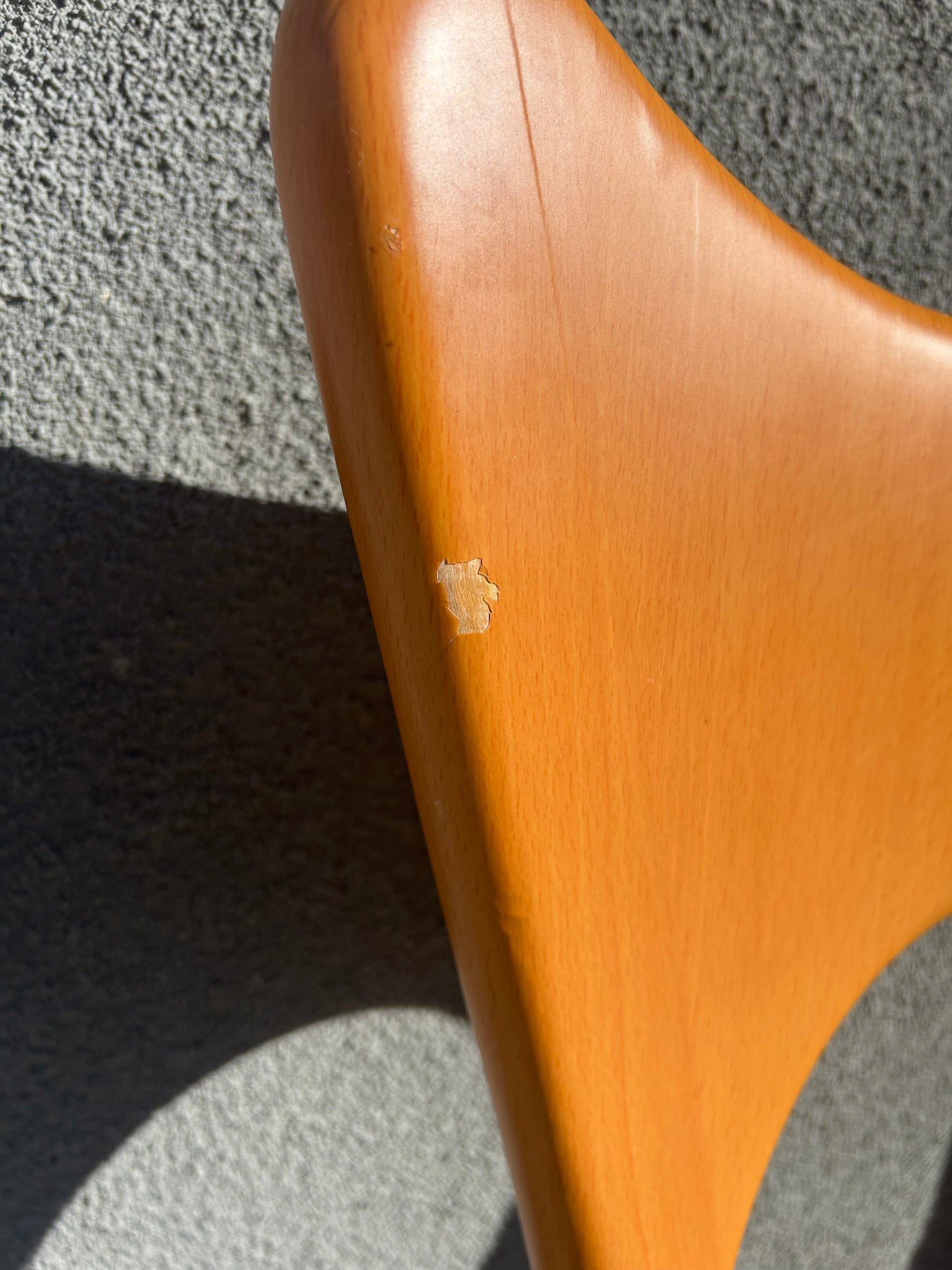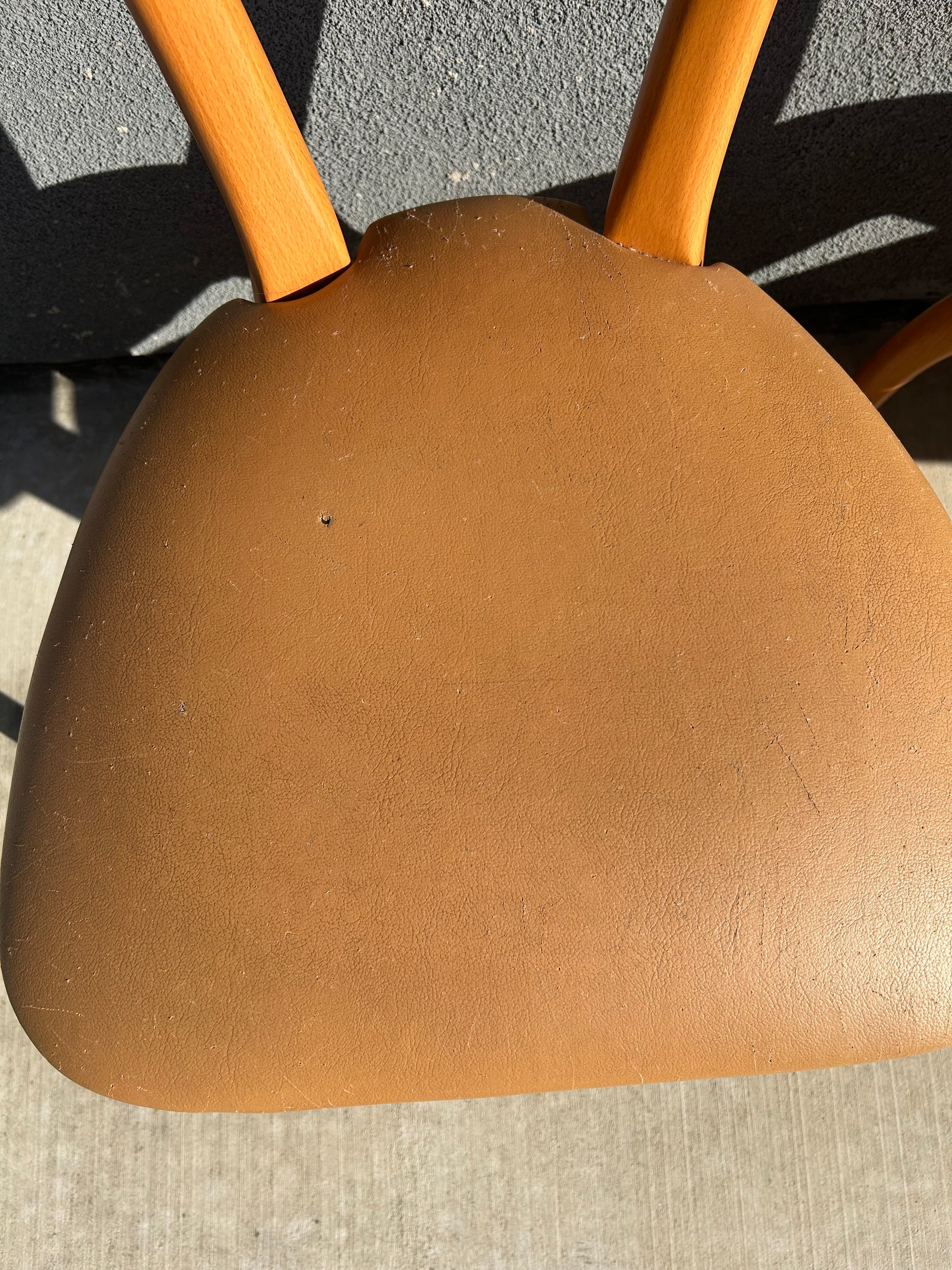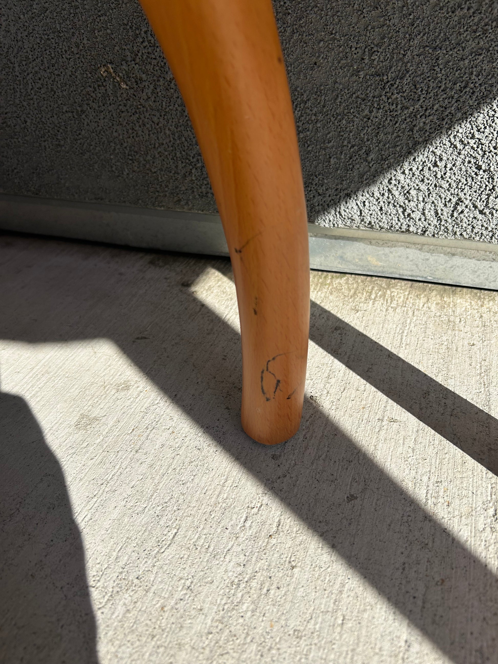Crafted with sleek lines and a nod to organic forms, this dining set is peak Italian Design. Original vintage condition with some wear and tear to both veneer and leather seats. Condition is factored into price, see photos.