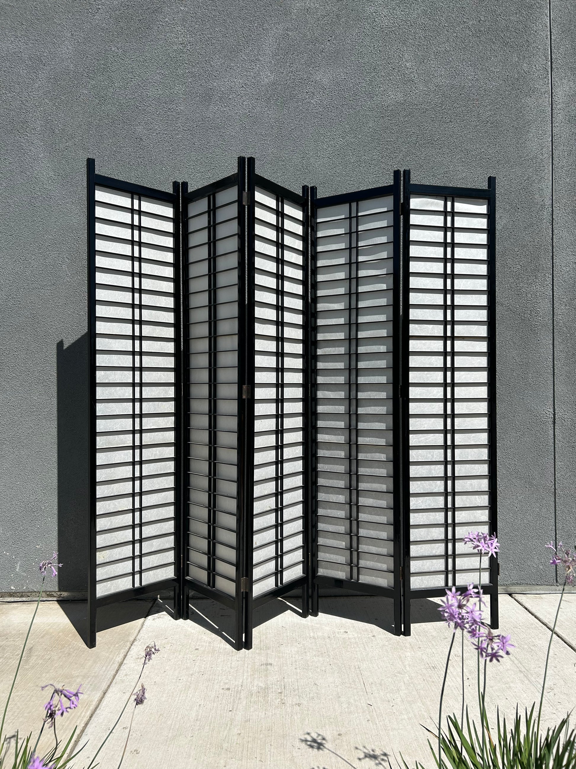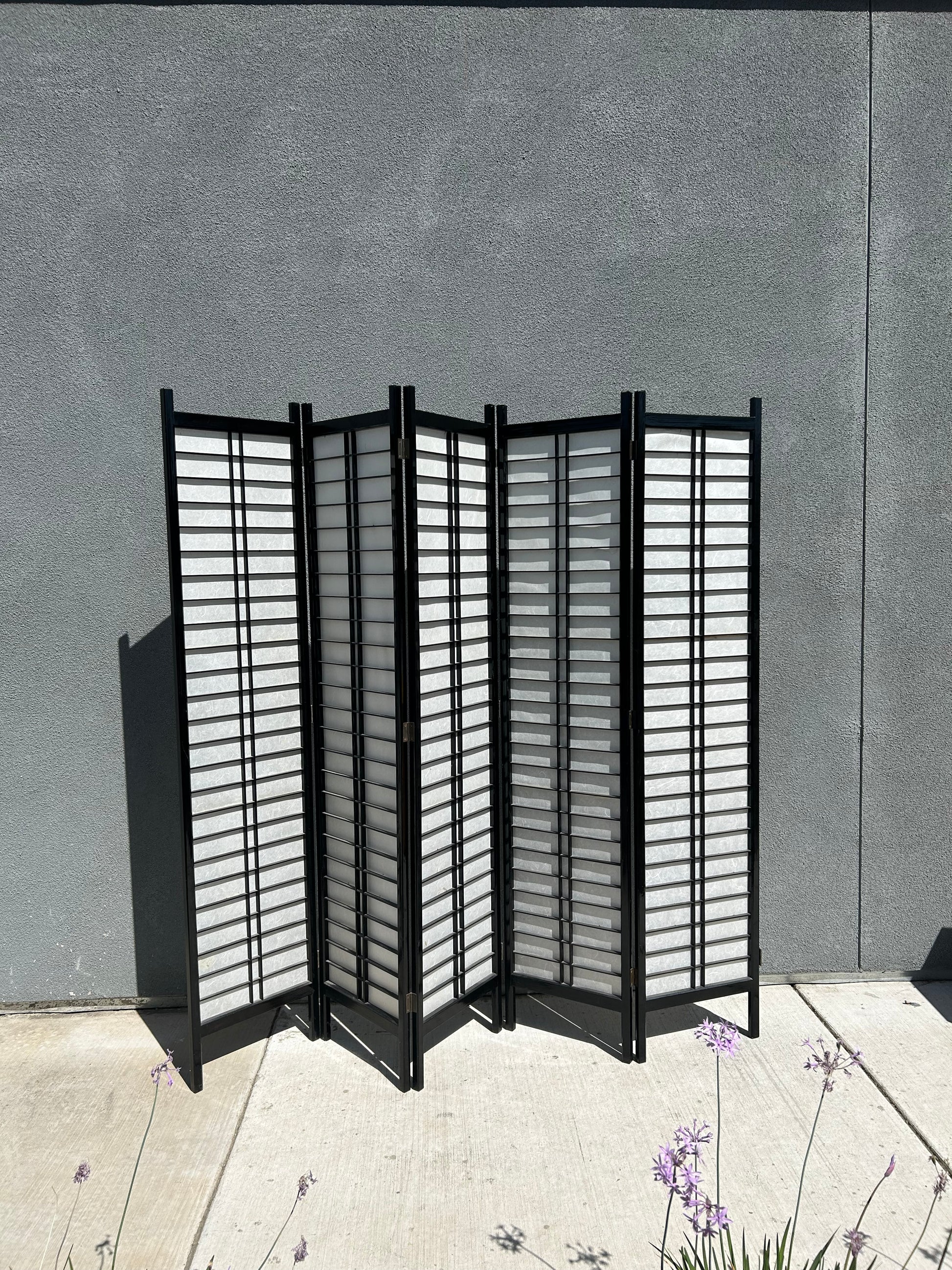Vintage MCM Lacquered Frame 5-Panel Shoji Screen - Made in Japan, Circa 1960s