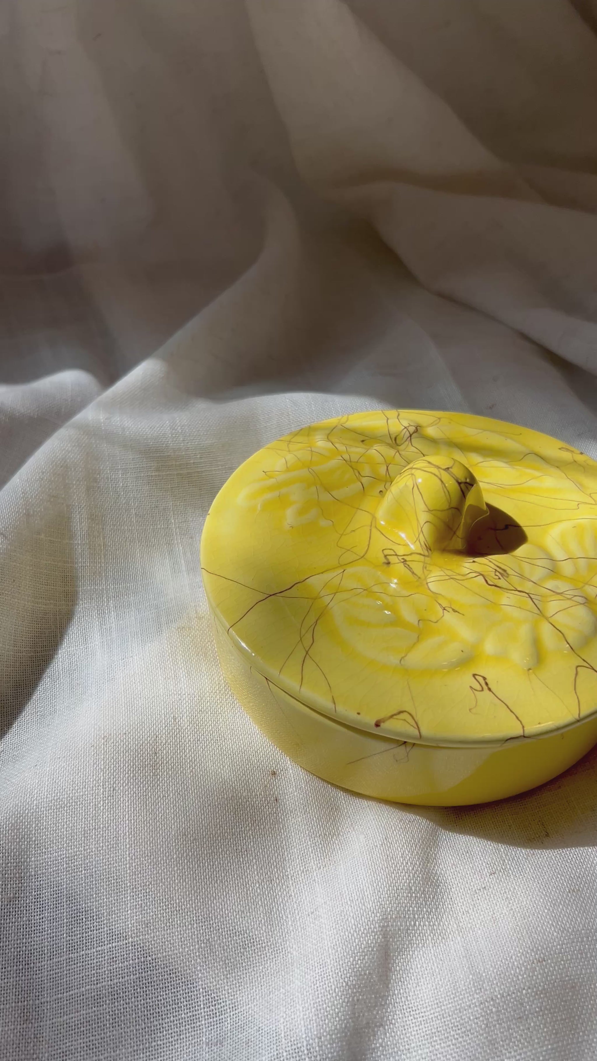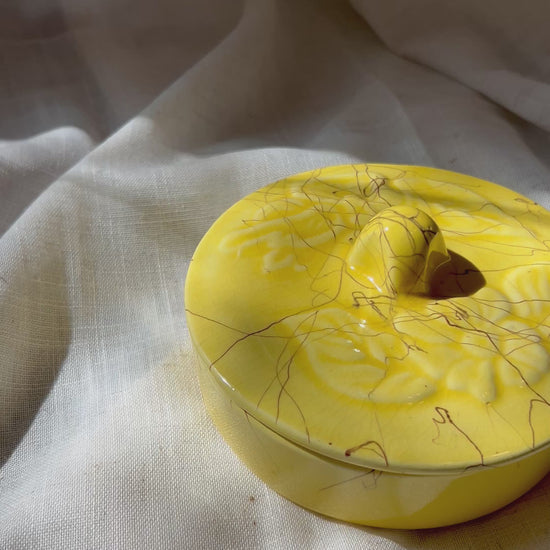 Vintage Mid Century Yellow Splatter Dish with Lid