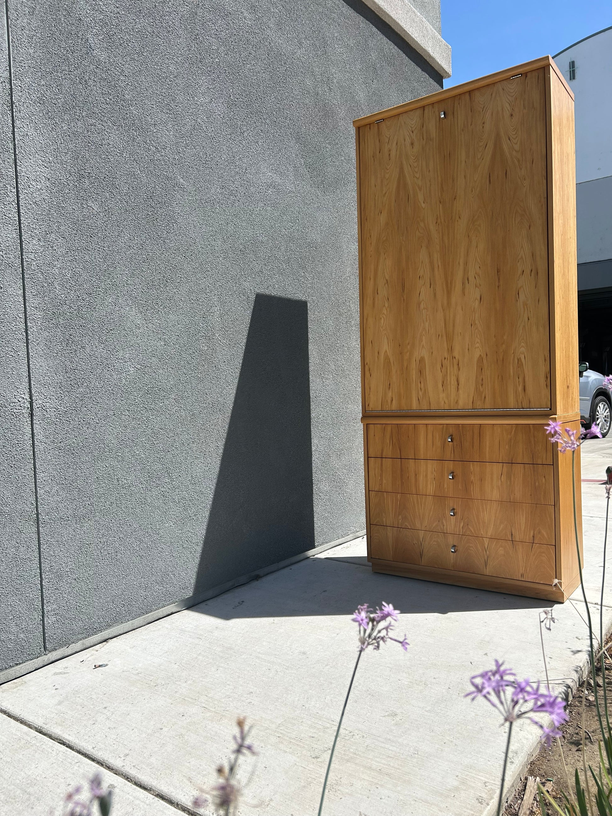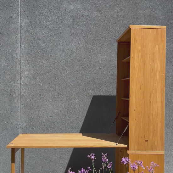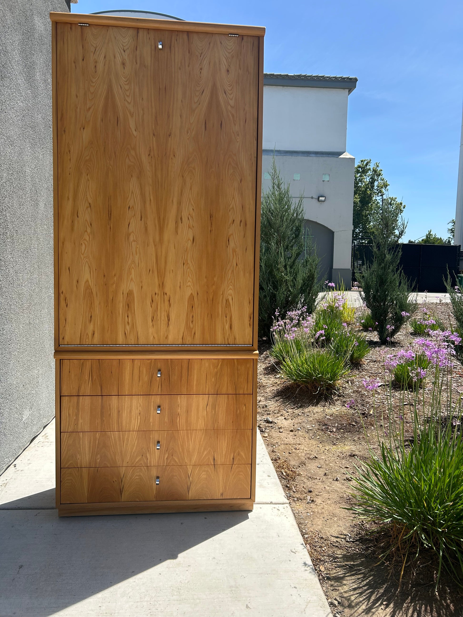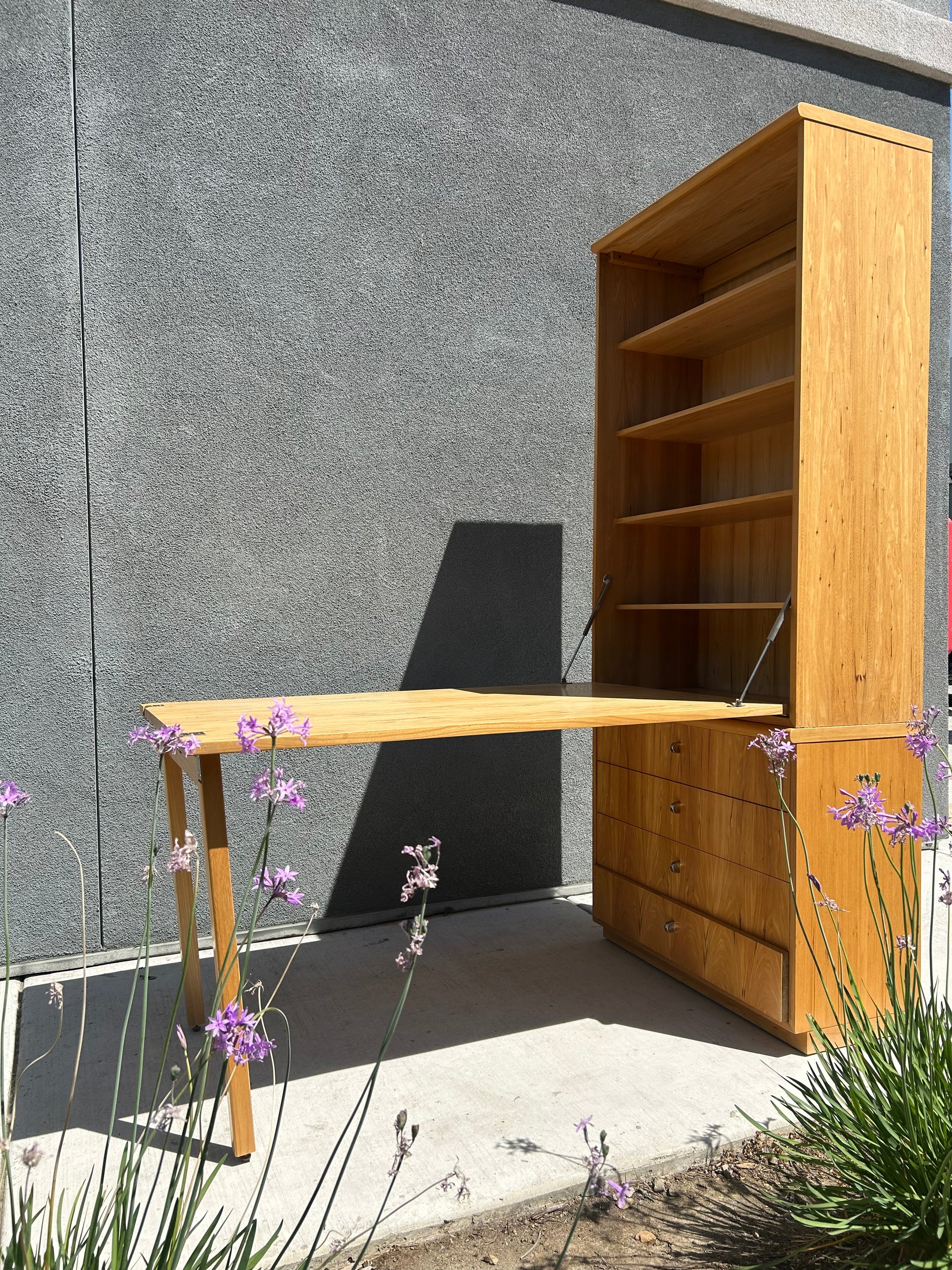 Vintage Postmodern 4-Drawer Blonde Pecan Dresser w/ Modular Hutch Craft Table, Circa 1980s