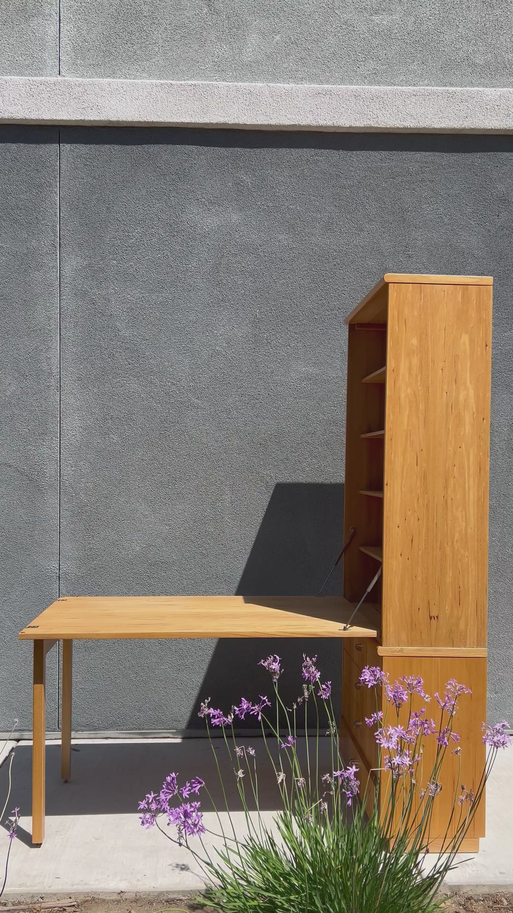 Vintage Postmodern 4-Drawer Blonde Pecan Dresser w/ Modular Hutch Craft Table, Circa 1980s. Comes in two pieces. Can be used as a craft or dining table or a stow away desk. Real wood veneer.
