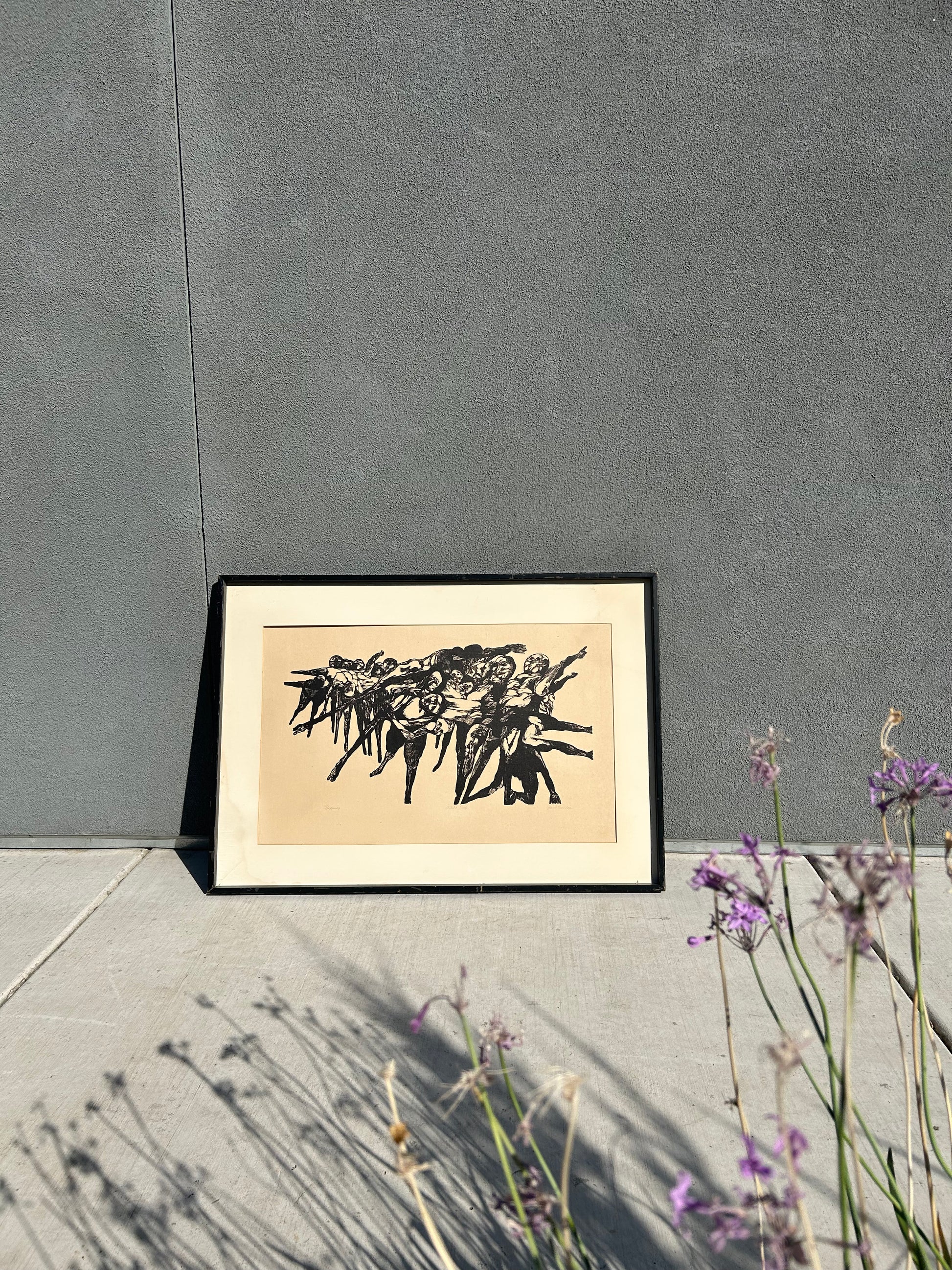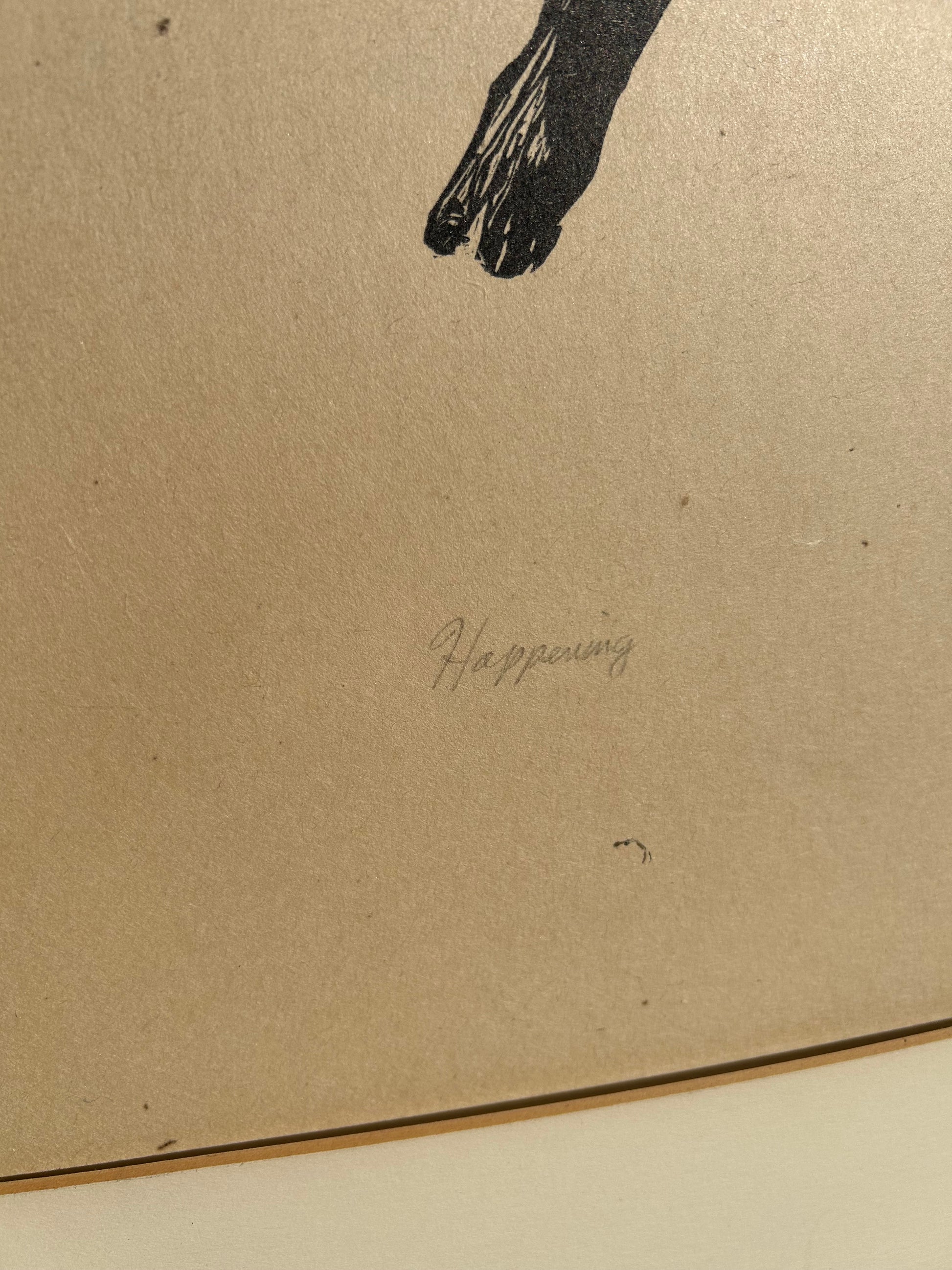 "Happening", (1962) woodcut, signed and titled in pencil, matted and framed. Limited edition woodcut.