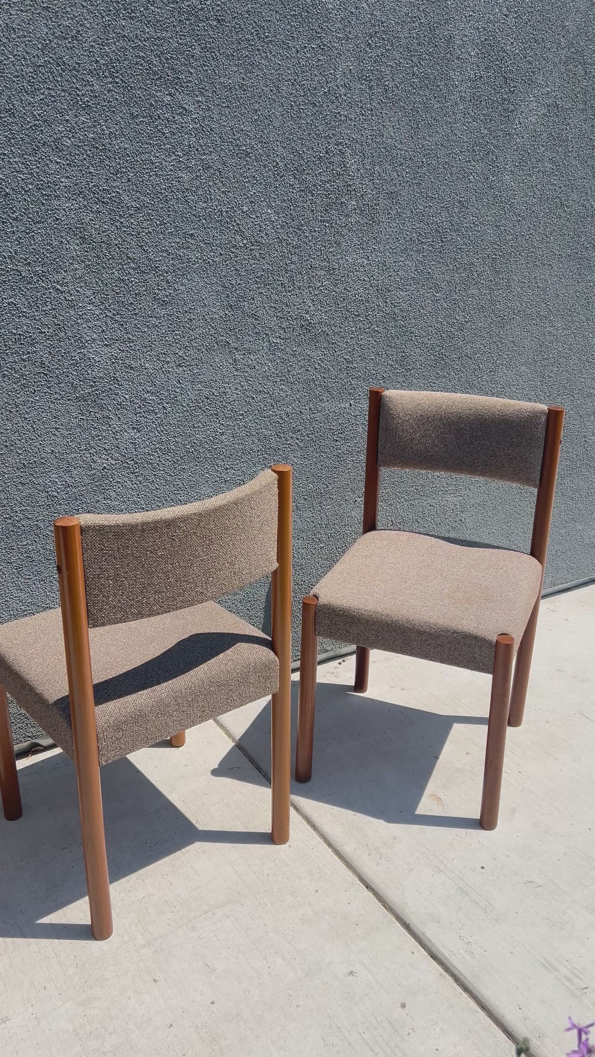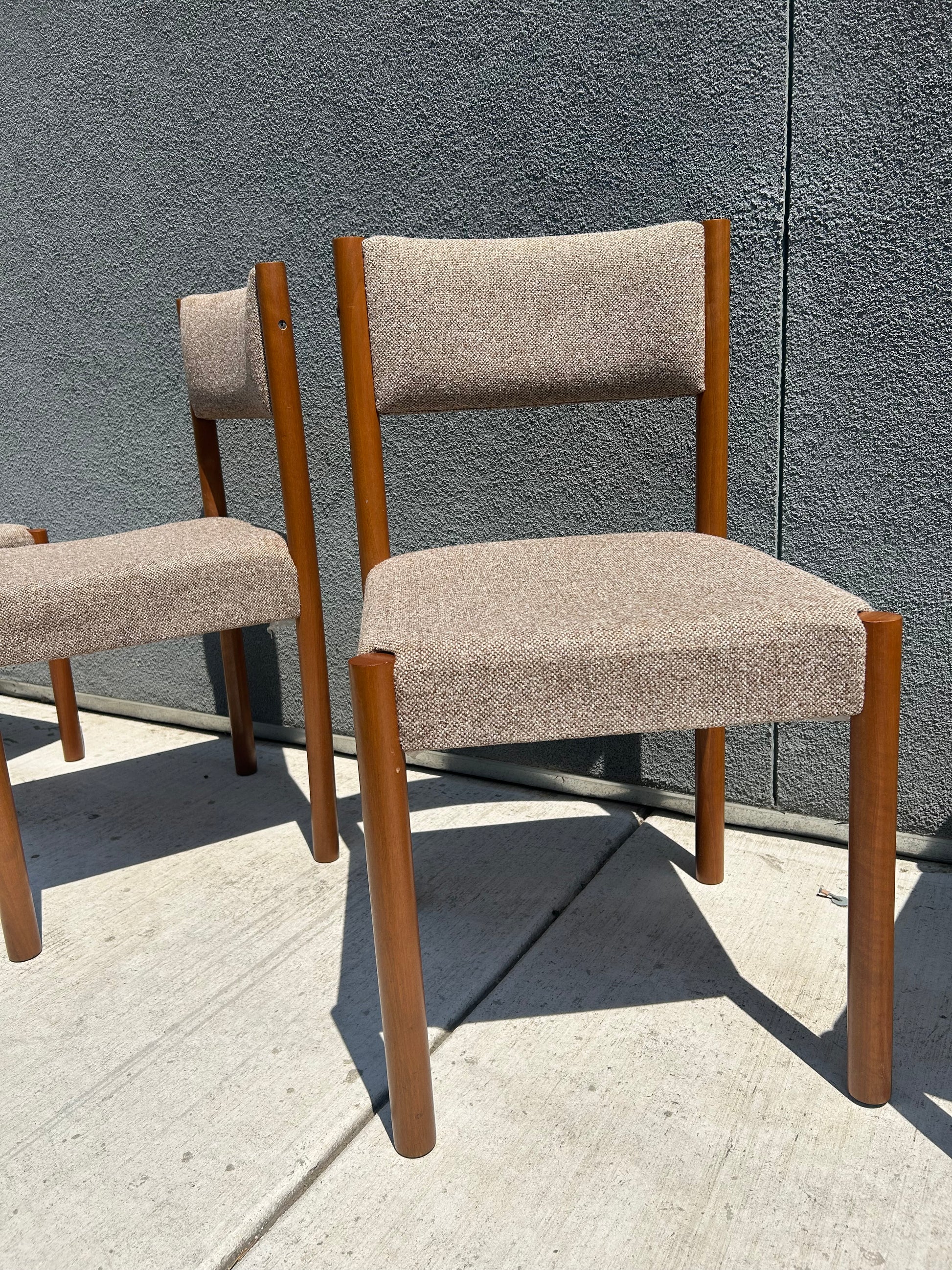 Vintage Teak and Wool Upholstered Danish Style Dining Chairs, Circa 1980s