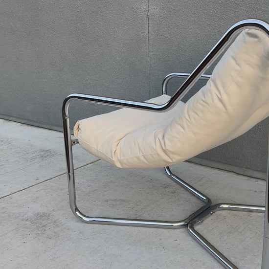 Vintage Unarco Cream Canvas Sling Lounge Chair, Circa 1970s