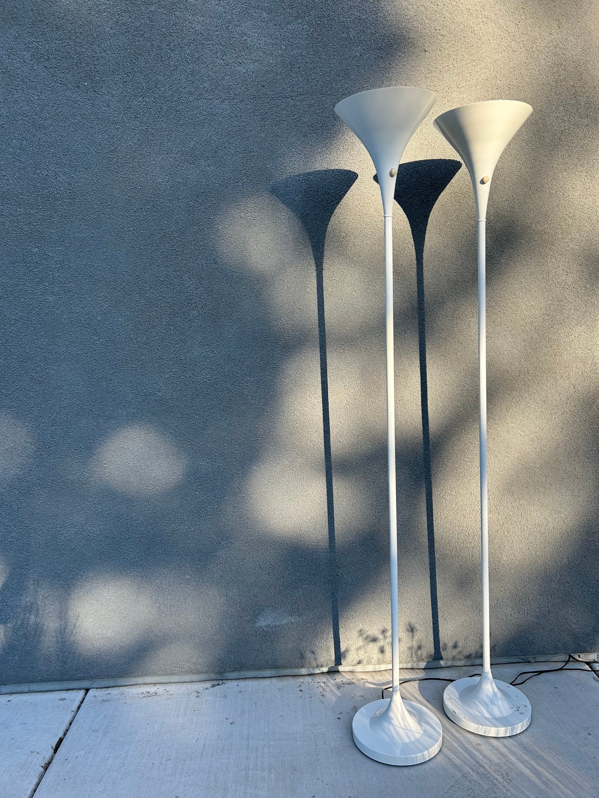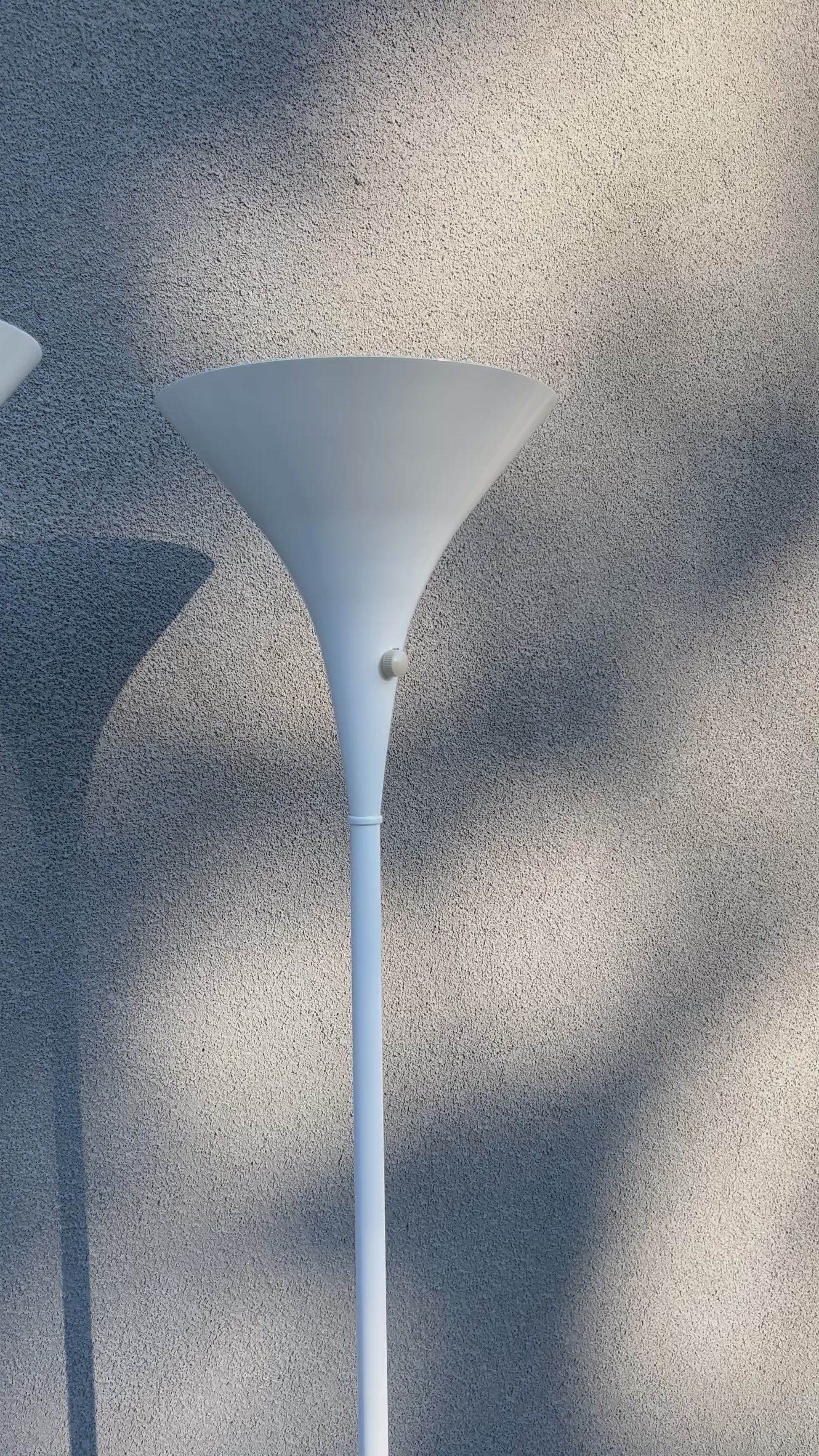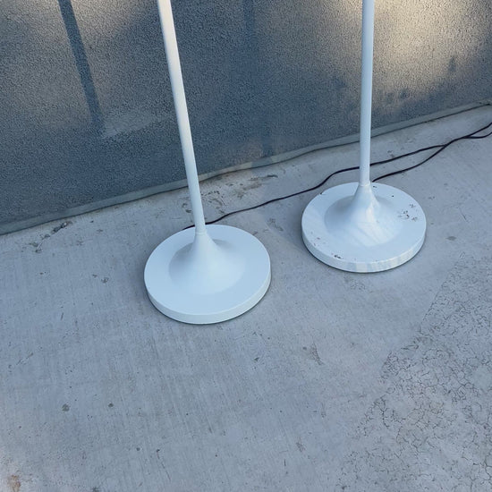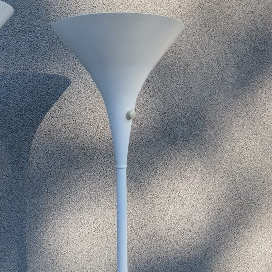 White Conical Torchiere Floor Lamps with Dimmer, Circa 1970’s